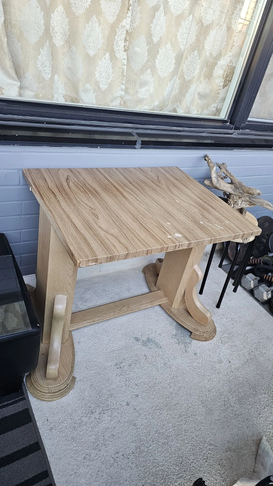 Selling a super sturdy wooden table. It has a unique design with curved leg supports. It's perfect for a small space or as a side table. From Pet Free | Smoke Free Home ๐ Wellesley and Sherbourne check out my other listing as well.