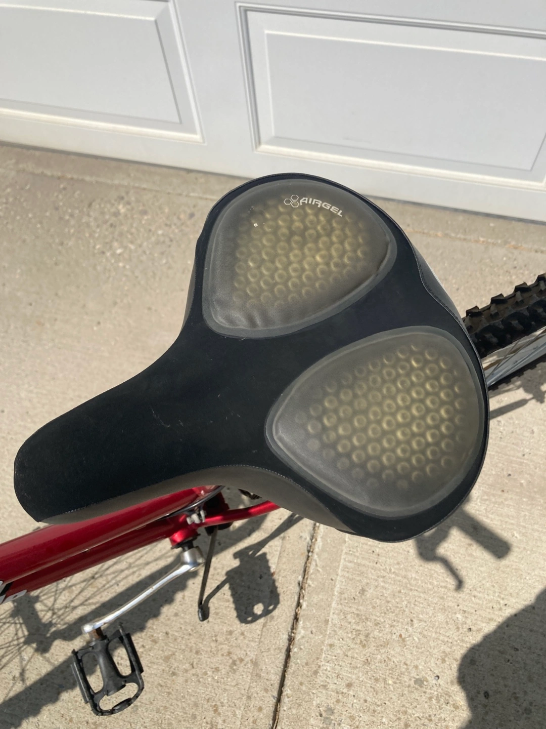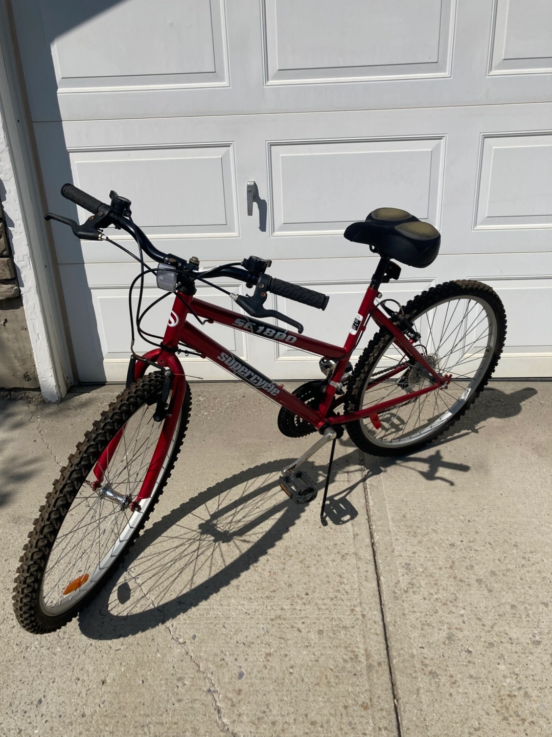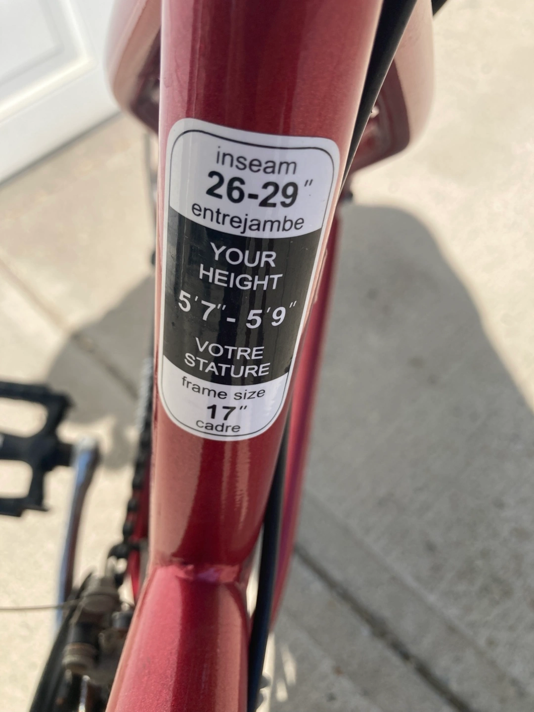 68Supercycle 1800 bike. This bike is in used condition but has been well-maintained. It features a 17-inch frame with a low crossbar and is suitable for riders 5'7" to 5'9". Good tires, functioning brakes and gears. Extra comfort seat.