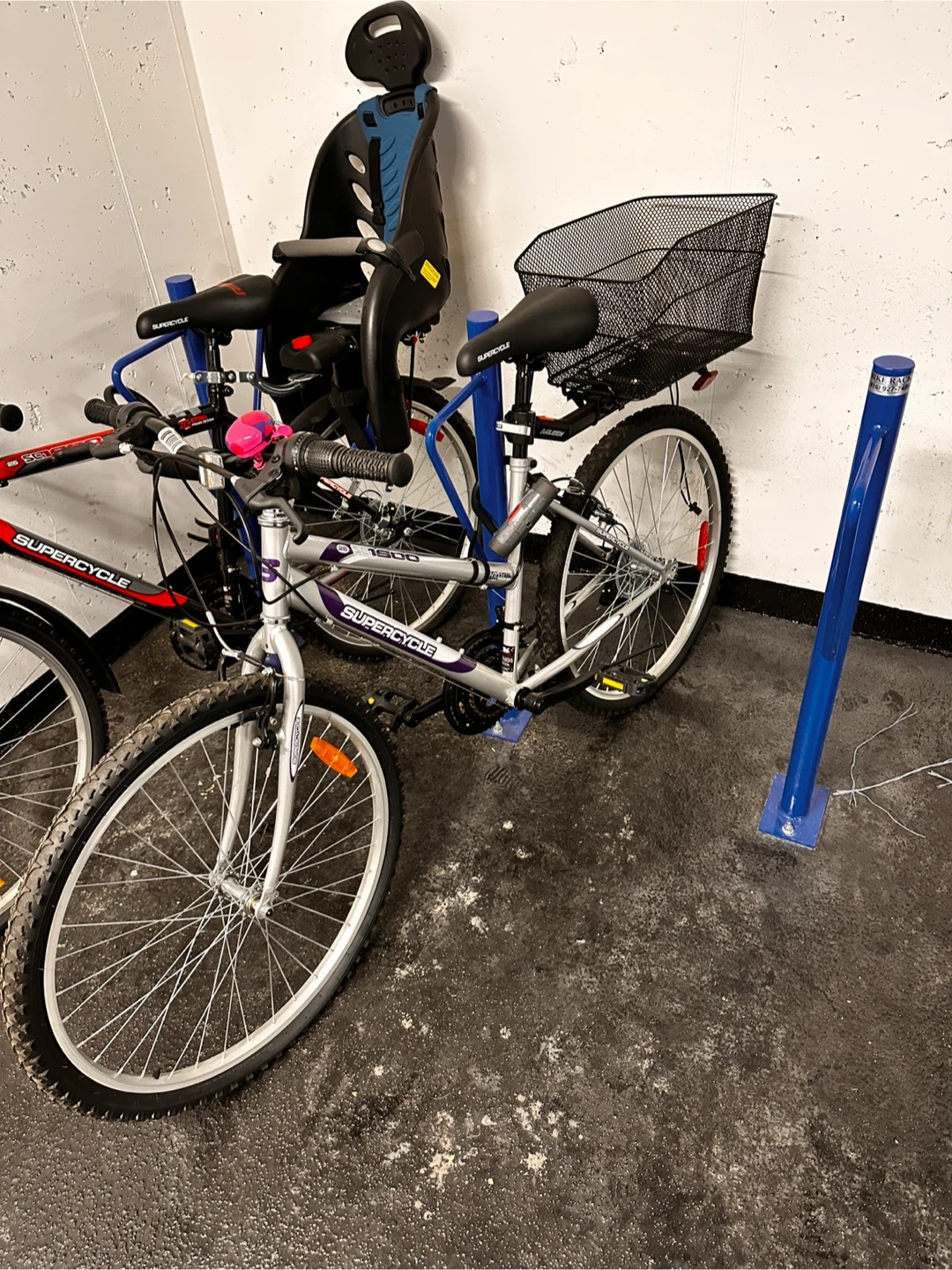 70Selling a Supercycle SC1800 bicycle in silver and purple. It's in great condition and ready for a new owner. Perfect for getting around town or enjoying a leisurely ride! Basket for storage and bell has been added