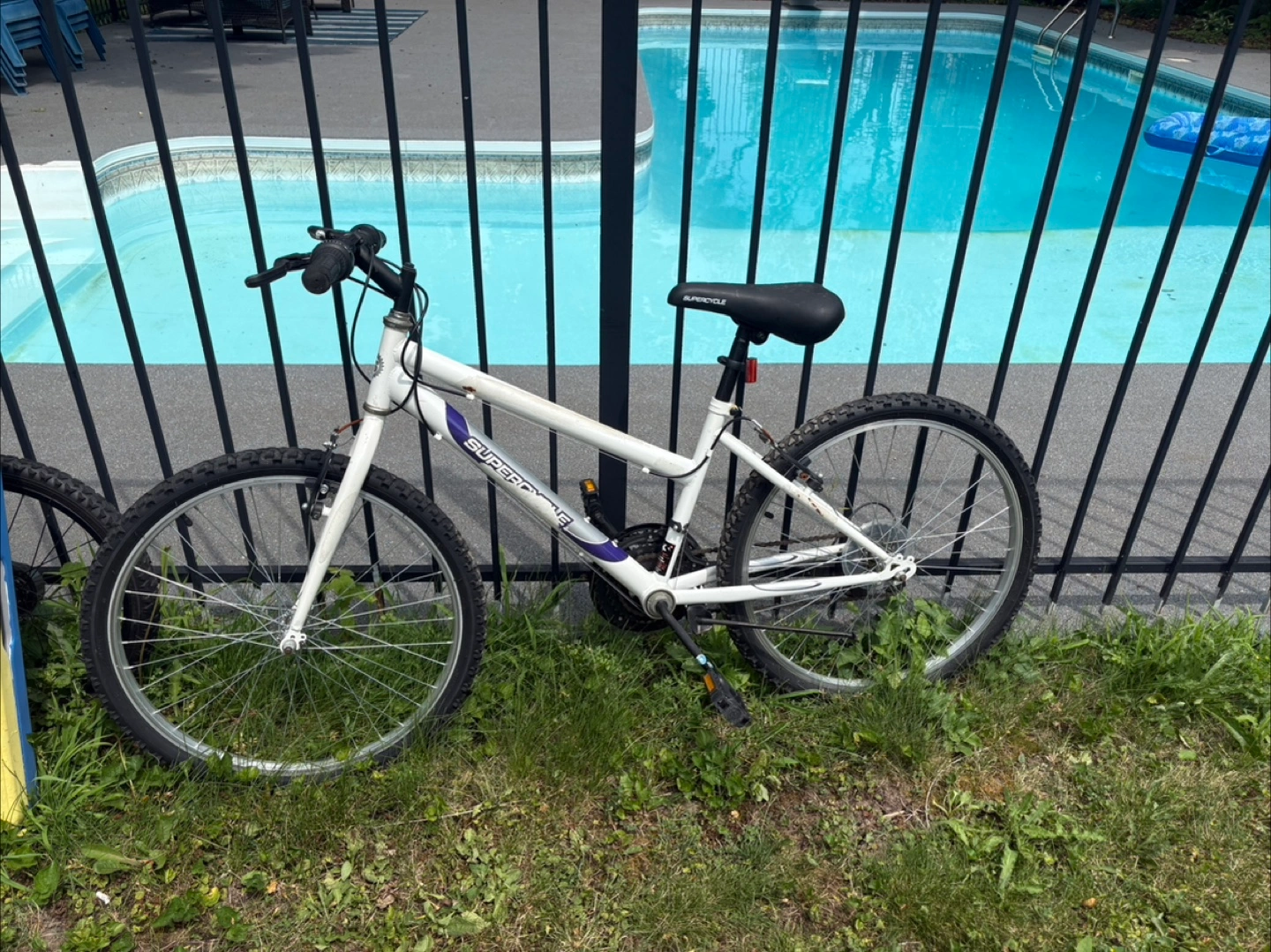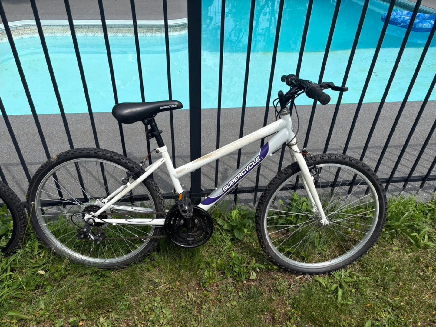 14Selling a Supercycle mountain bike. It is white with a purple accent. With working everything.