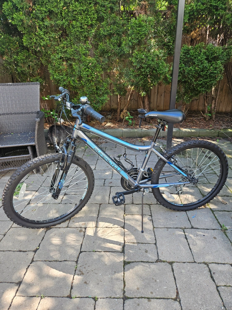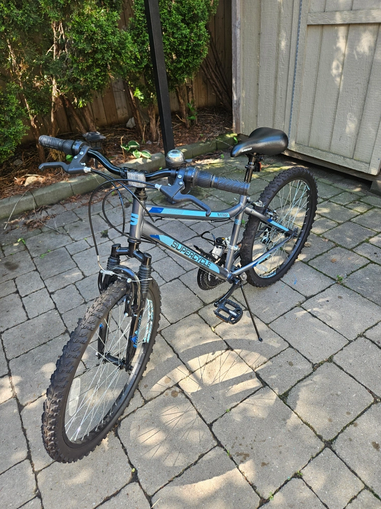 10Only used a few times. Perfect for neighbourhood rides or light trail adventures, this bike features front suspension for a smoother ride, a 21-speed grip shifting system for easy gear changes, and a durable 3-piece crank. Charcoal grey metallic with light blue accent. Like new condition. Retails $229+tax. Pick up Broadview and Mortimer. Will deliver for a fee depending on location.