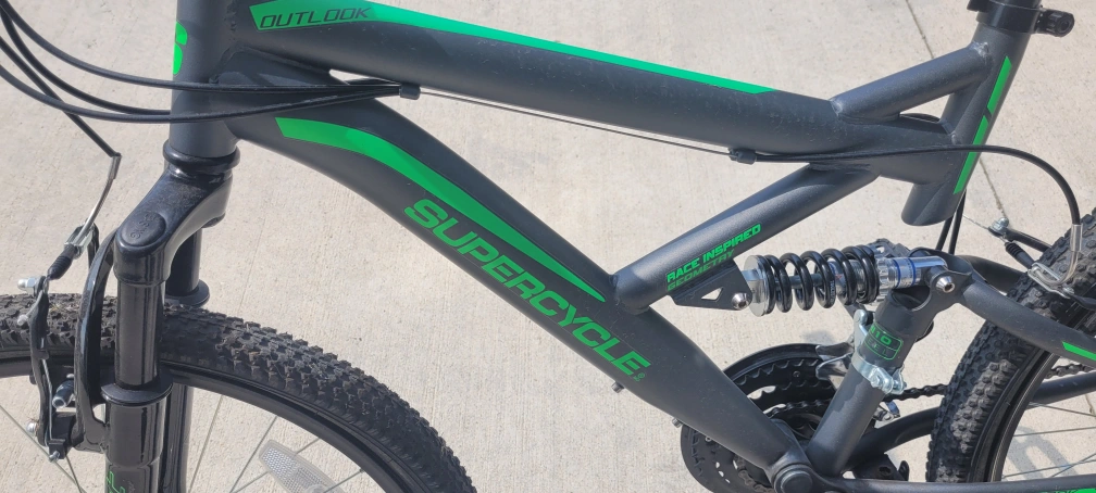 excellent condition Selling a Supercycle Outlook mountain bike. It features a black frame with green accents. It's perfect for hitting the trails or just cruising around the neighbourhood!