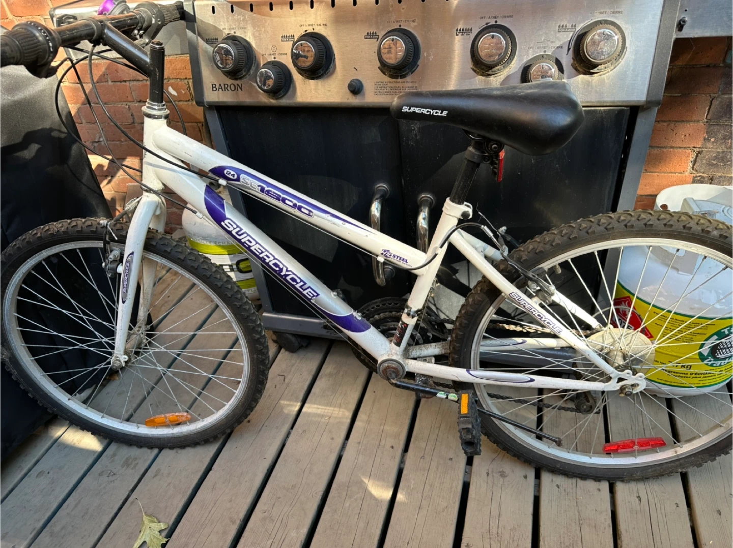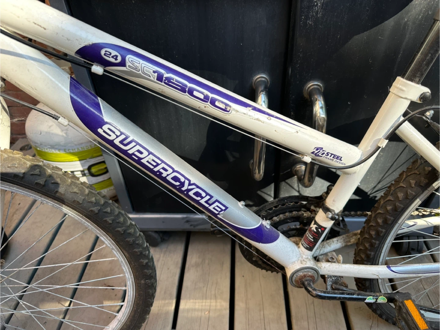 52Selling a Supercycle SC1800 bike with 24" wheels. It's white with purple accents. Perfect for getting around!