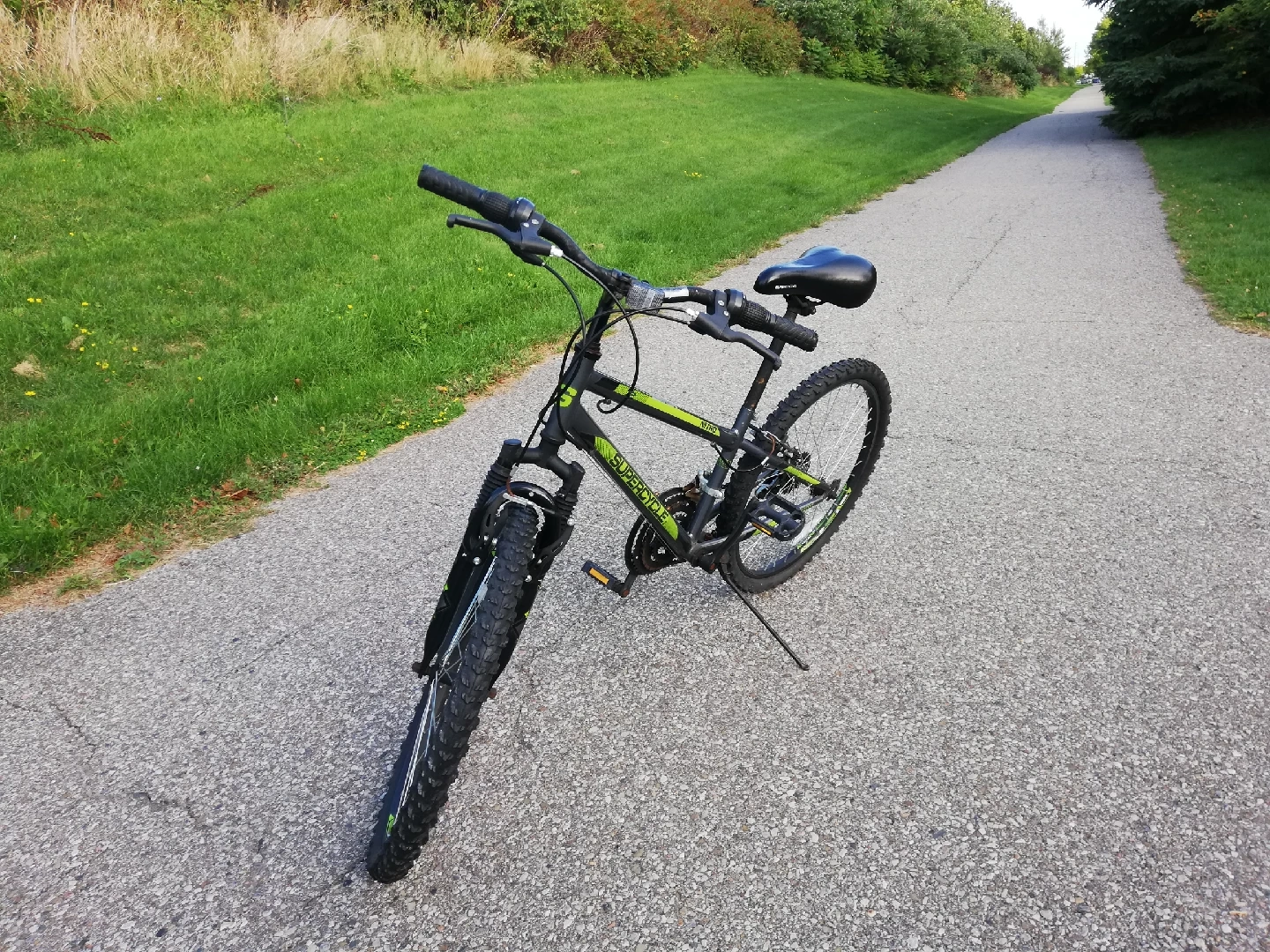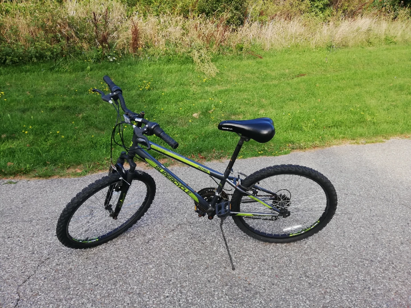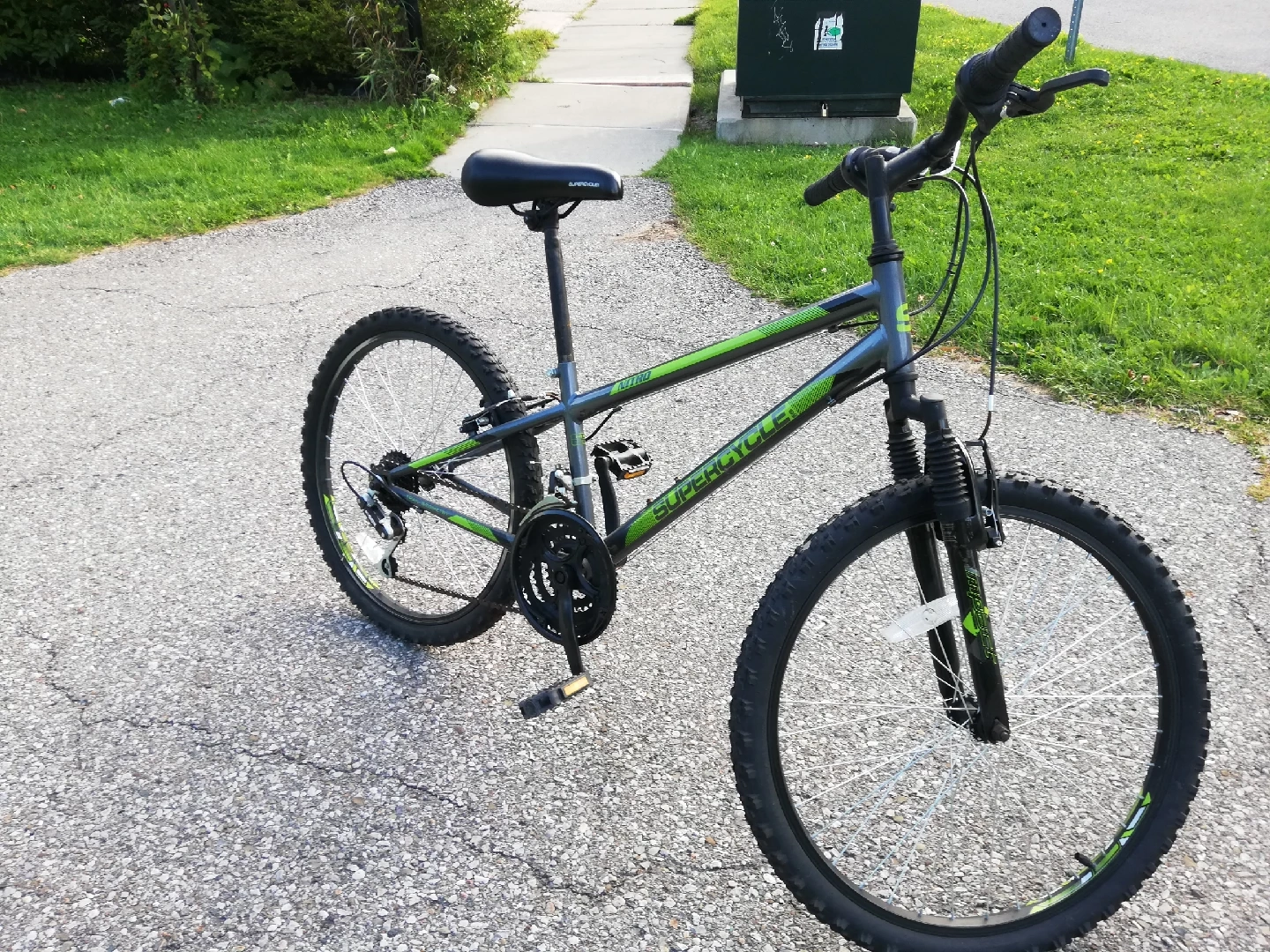 Selling a Supercycle Trail Blazer mountain bike. It's in good condition and ready for some trail adventures! The bike is a stylish black and green colour.
