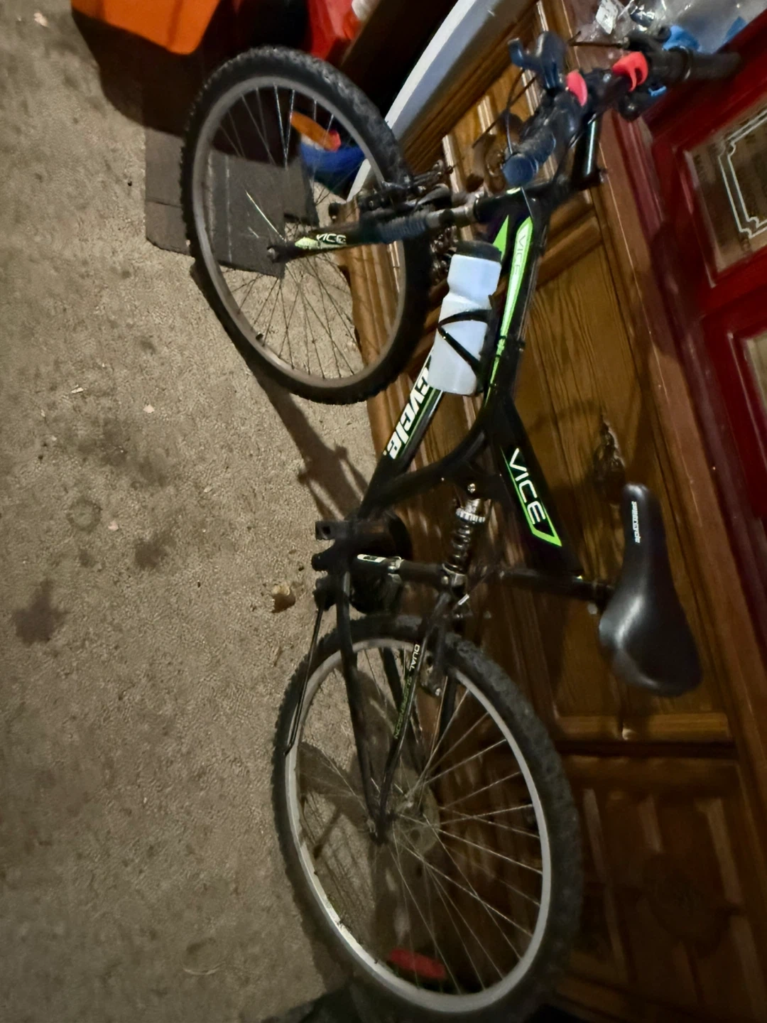 10Selling a Supercycle Vice mountain bike! It's black with green accents and has a water bottle holder. Great for hitting the trails or just cruising around the neighbourhood
