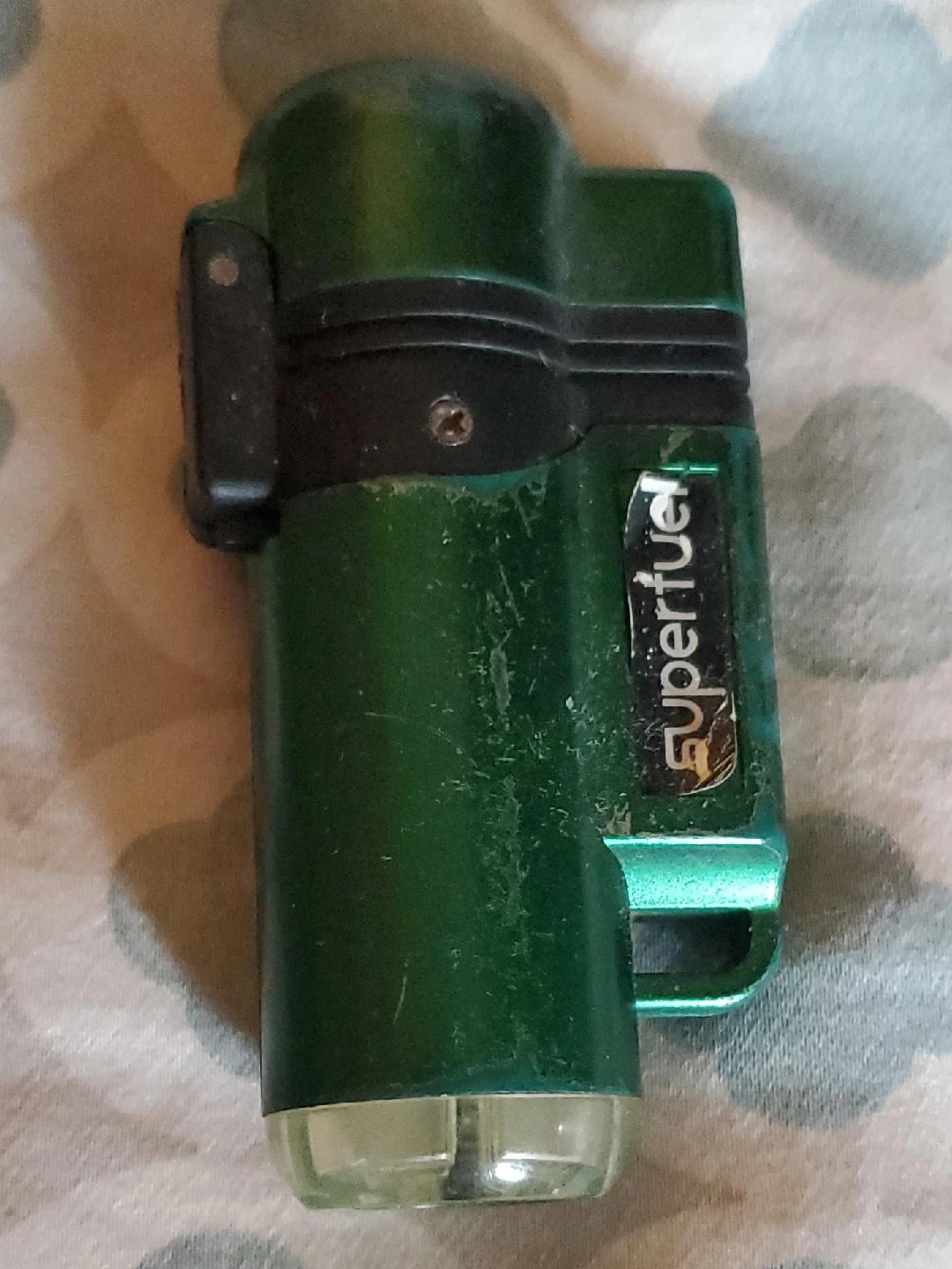 10Selling a green Superfuel torch lighter. It shows some signs of use, but is still functional and refillable.