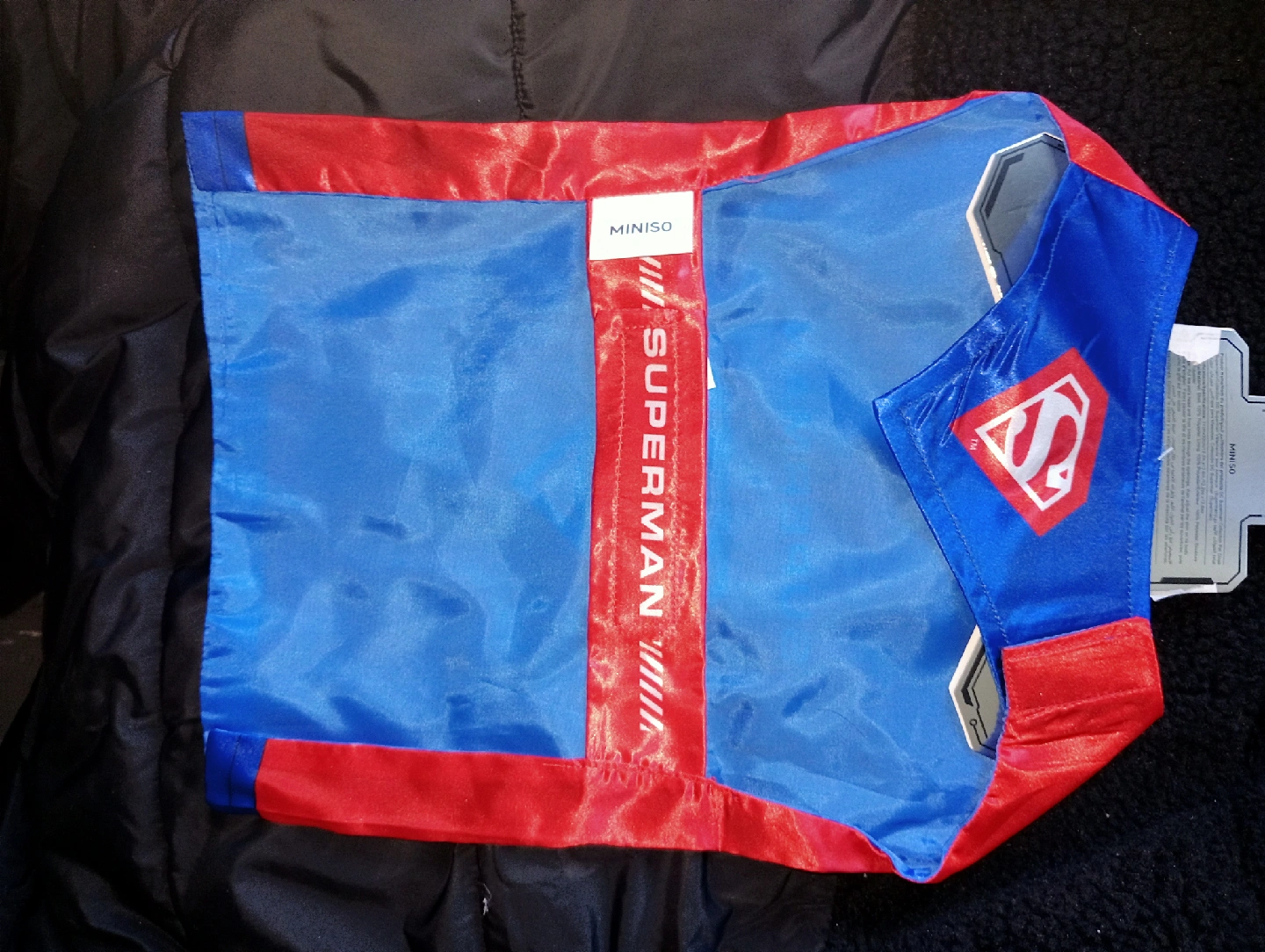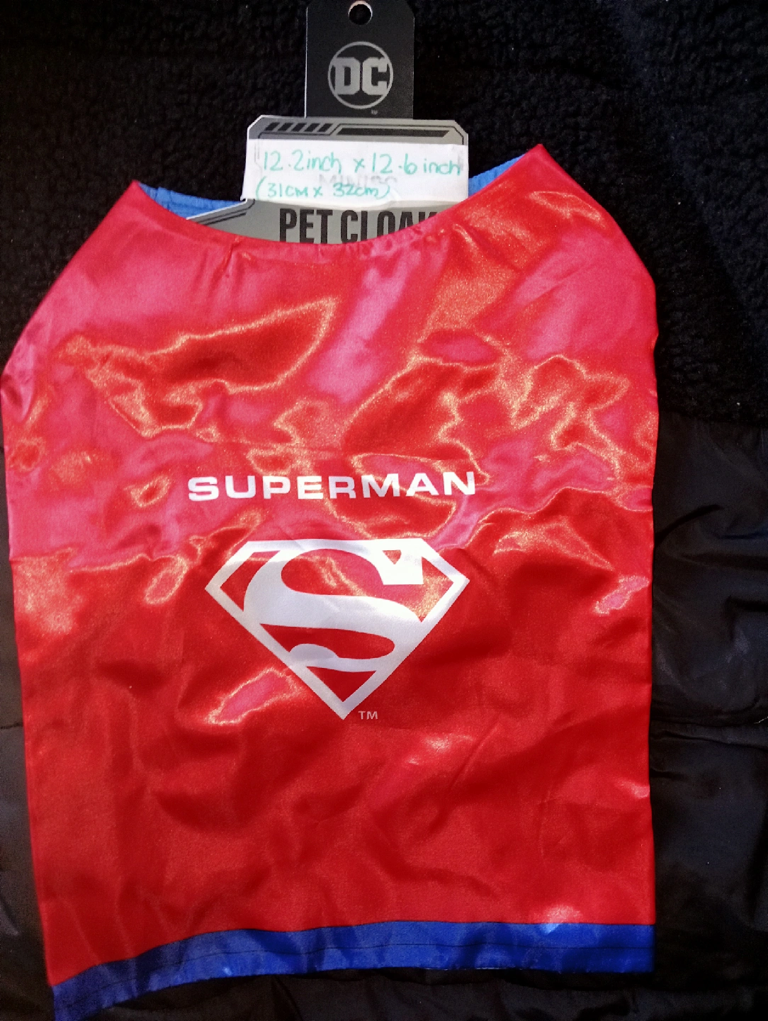 Selling a brand new Superman pet cloak! It measures 12.2 inches by 12.6 inches (31cm x 32cm). Perfect for your furry friend to dress up as the Man of Steel I have 2 of them perfect to match ur doggys $7 each