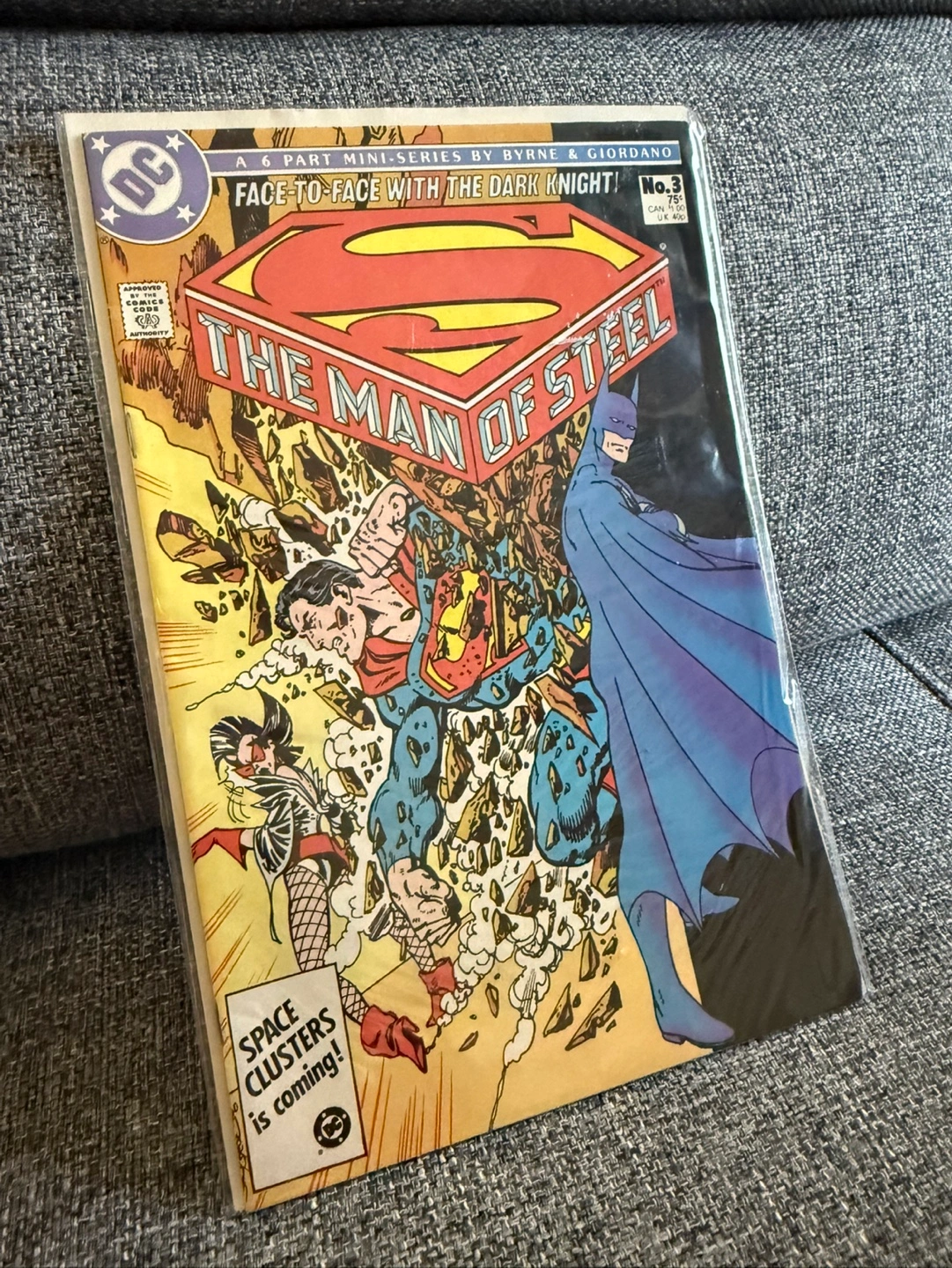 15Selling Superman: The Man of Steel No. 3 comic book. It's part of a 6-part mini-series by Byrne & Giordano, titled 'Face-to-Face with the Dark Knight!'
