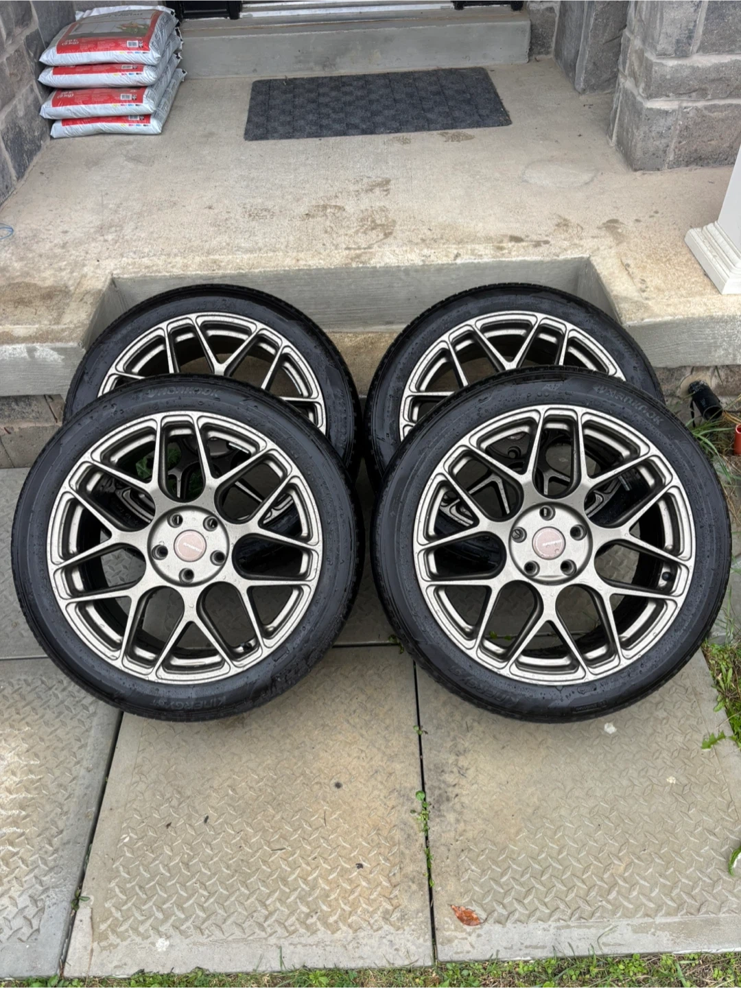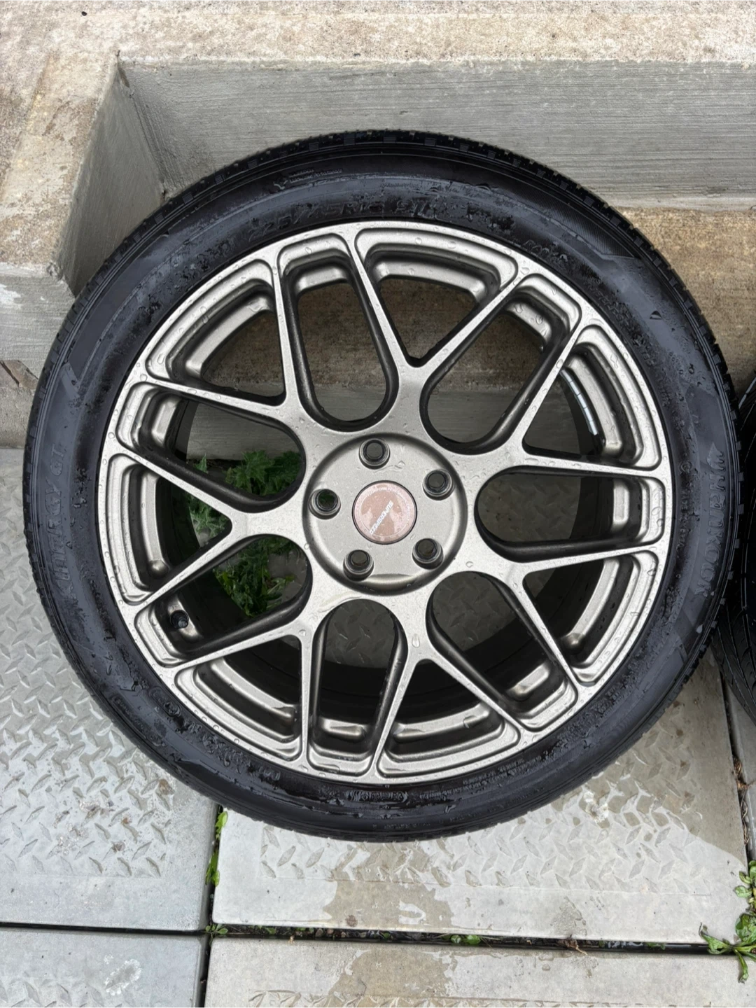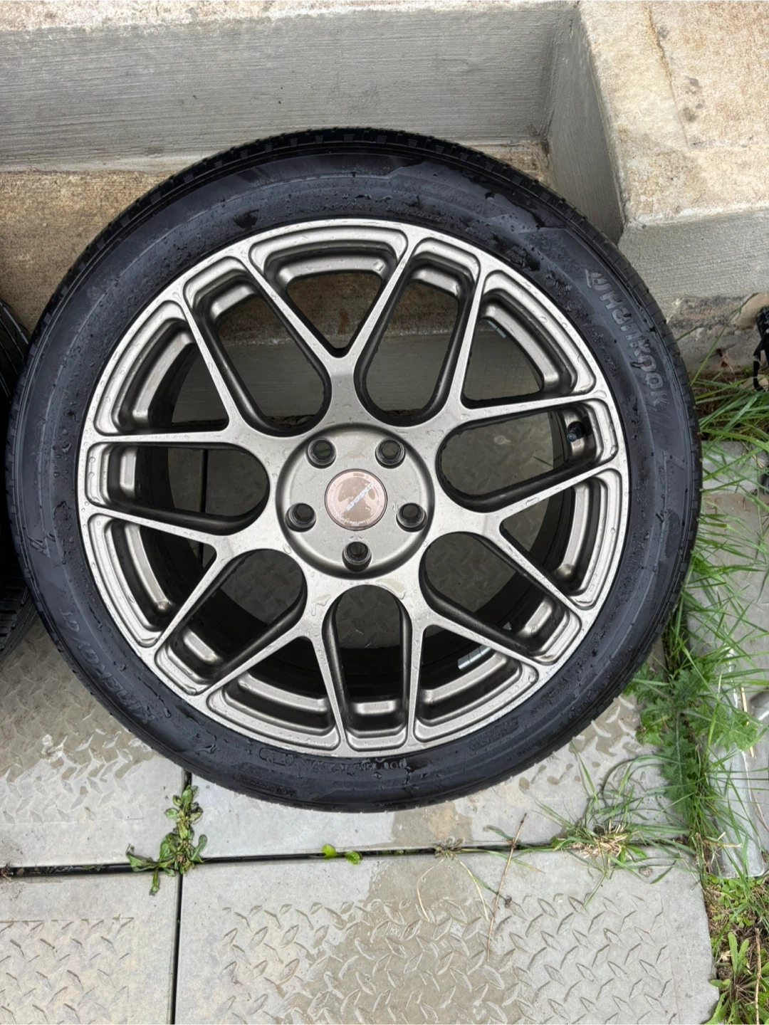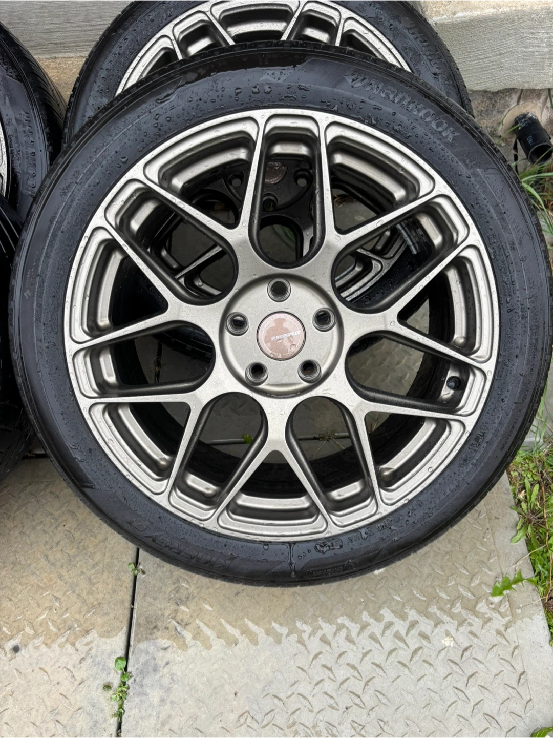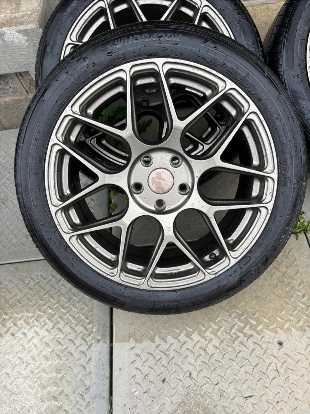 Good condition Superspeed RF01RR’s and Tires Rims: SuperSpeed RF01RR Bolt pattern:5x112 Offset: 42 Centre Bore: 66.6 Rims size 18x8 Tires: Hankook Kinergy GT Size: 225/45/18 Dot: 2023 (20th week of 2023) Wheels are in good shape 2 are at 90% and the other 2 are at 60% as it was used last on a golf gti (fwd) Rims are in good condition, no bends or cracks, all wheels drive straight, and zero vibrations. 3 of the wheels are mint, one has a small amount of rash on it, hardly noticeable as you can see in the photos.