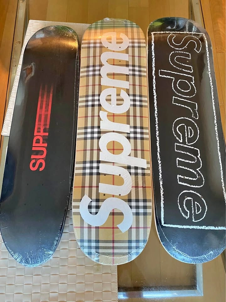 Supreme Skateboard Decks and BOGO Chair Collections. 1, SUPREME Tonal Box Logo Skateboard Deck BLACK for $100 2, SUPREME Box Logo Stakeboard Deck red SS2023 FOR $100 3, SUPREME EXIT Skateboard Deck red SS2021 FOR $180 4, SUPREME BURBERY Skateboard Beige SS22 FOR $ 250 5, SUPREME MOTION LOGO CRUISER SKATE SS2020 BLACK FOR $100 6, SUPREME KAWS CHALK LOGO SKATEBOARD BLACK FOR $180 7, SUPREME LAWN CHAIR SS2020 for $150 All Skateboard Decks are brand new in sealed condition. ALL CASH DEAL AND SELF PICK UP IN DOWNTOWN MARKHAM. Thanks.