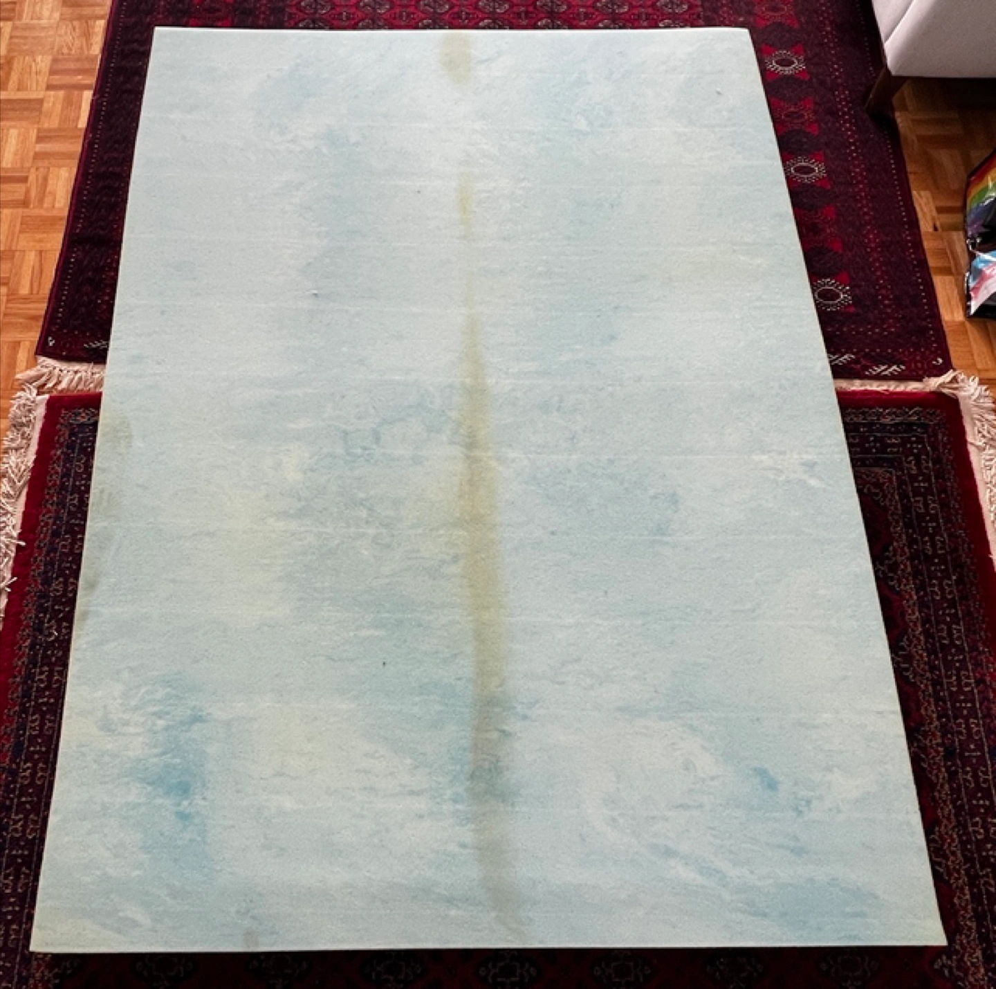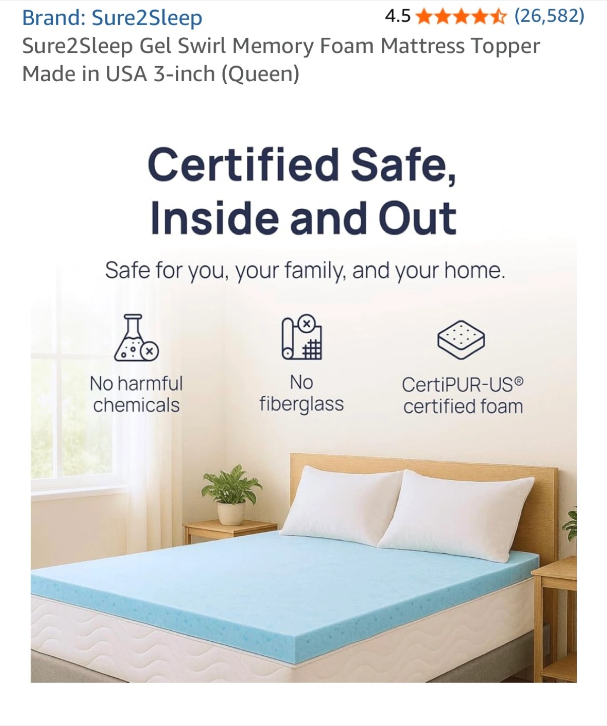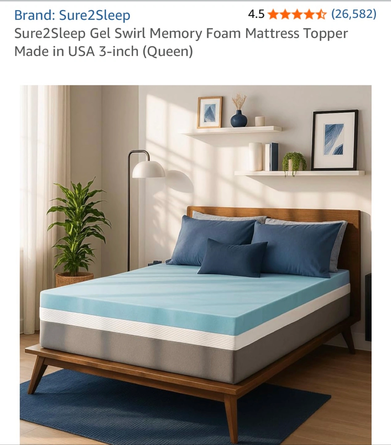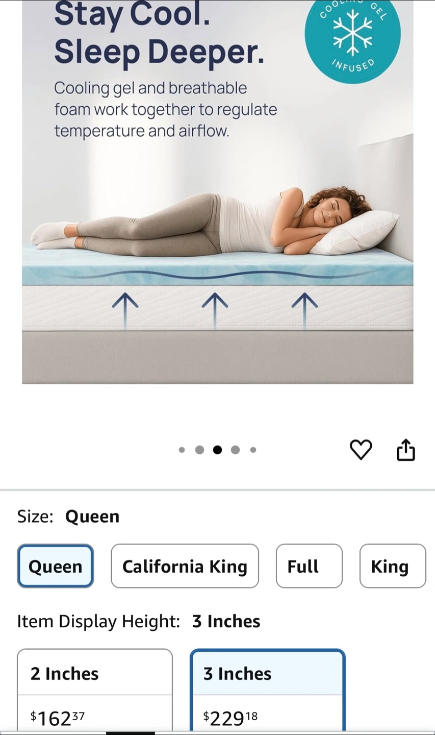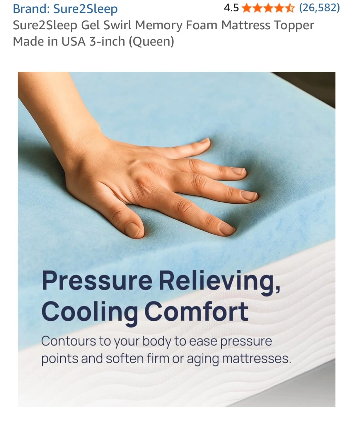 20Selling a Sure2Sleep Gel Swirl Memory Foam Mattress Topper! It's a Queen size and 3 inches in height. It's designed to keep you cool and help you sleep deeper with its cooling gel infused foam that regulates temperature and airflow. It helps with back pain. Mark in the middle is from storage, can easily be cleaned. Foam is still sturdy as it was only used a handful of times.