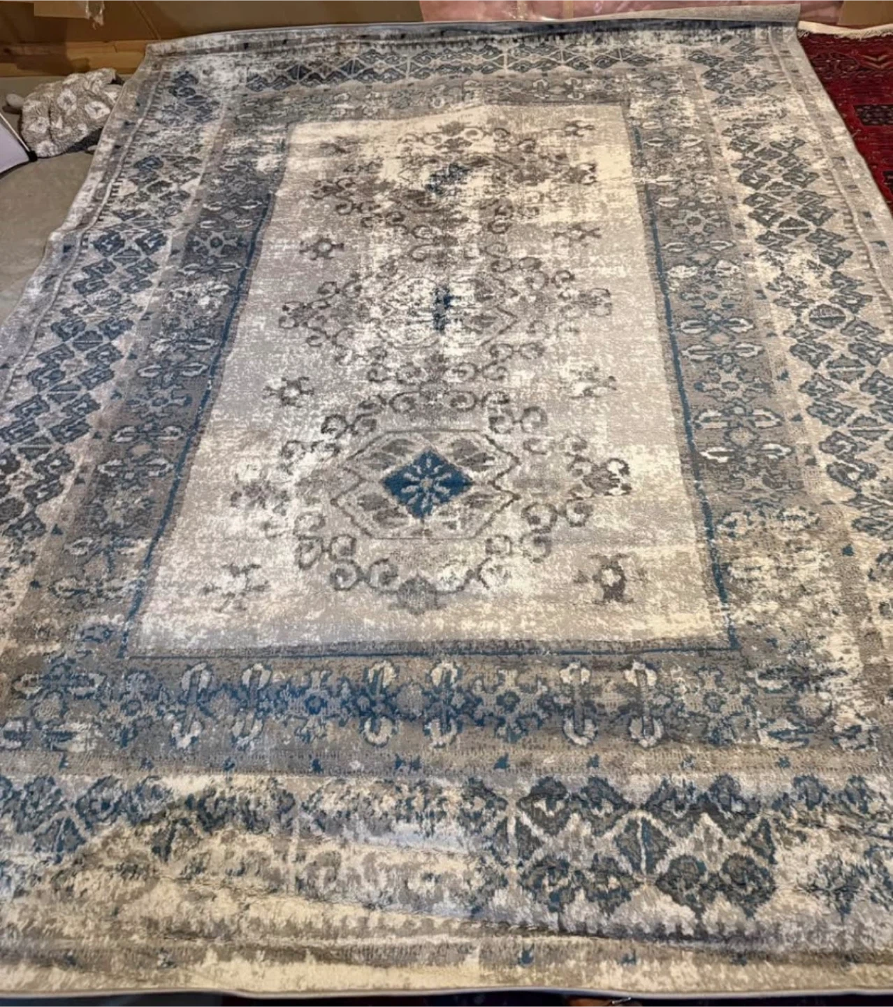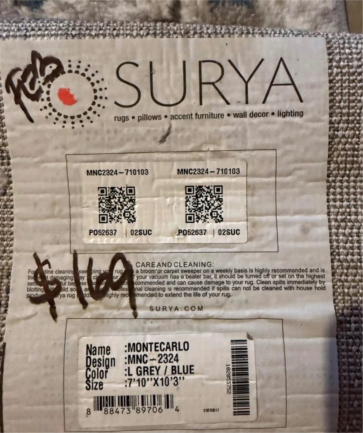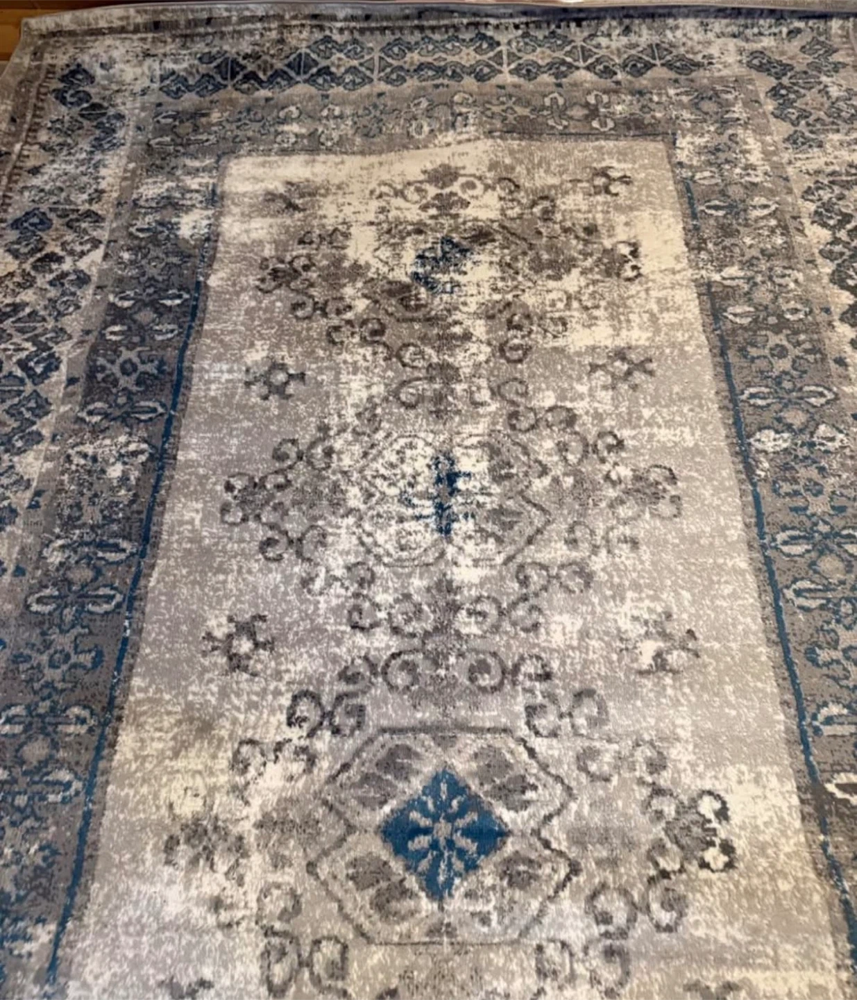Selling a Surya Montecarlo area rug in light grey and blue. It's sized at 7'10" x 10'3". The rug is in good condition and originally cost $149