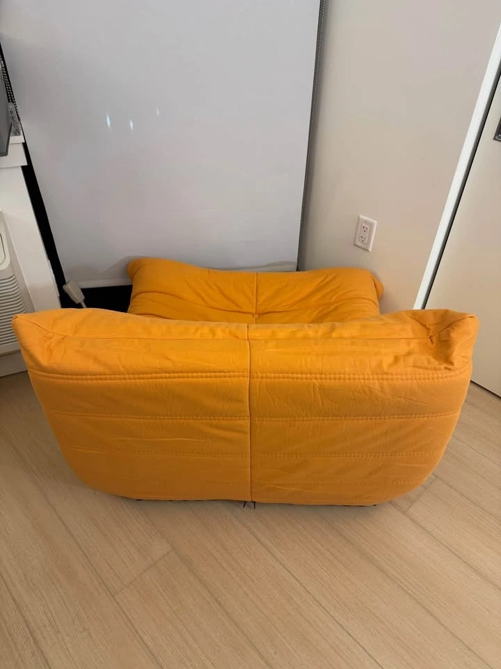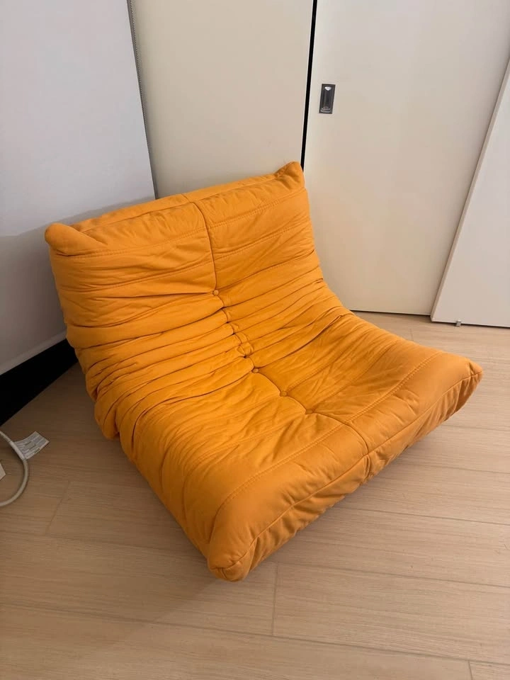 Selling this vibrant Saffron Orange Togo-style fireside chair. It’s an iconic, low-profile design that is incredibly comfortable for lounging, gaming, or reading. Condition: Excellent / Like New. This has barely been used. Clean, no stains, and from a smoke-free home. Skip the 3-4 week shipping wait from Amazon or Temu. It’s also super easy to move around your space; fits in the back of any car. The deep pleating and bold color make it a perfect statement piece for a living room or bedroom. Pickup only at 626 Newark Ave apt lobby.
