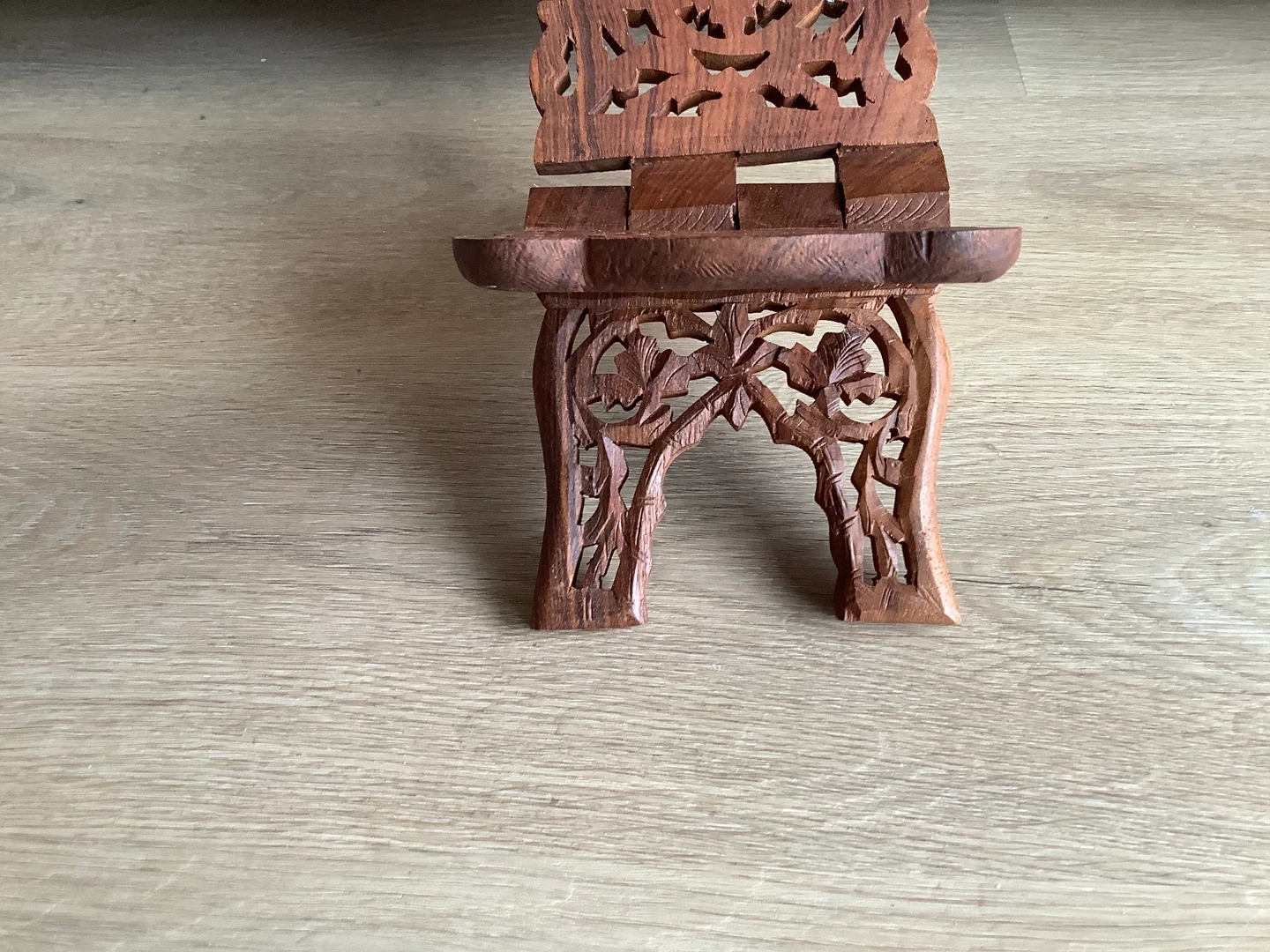 Vintage hand carved teak wood book stand often referred to as a Rehal/Rihal.