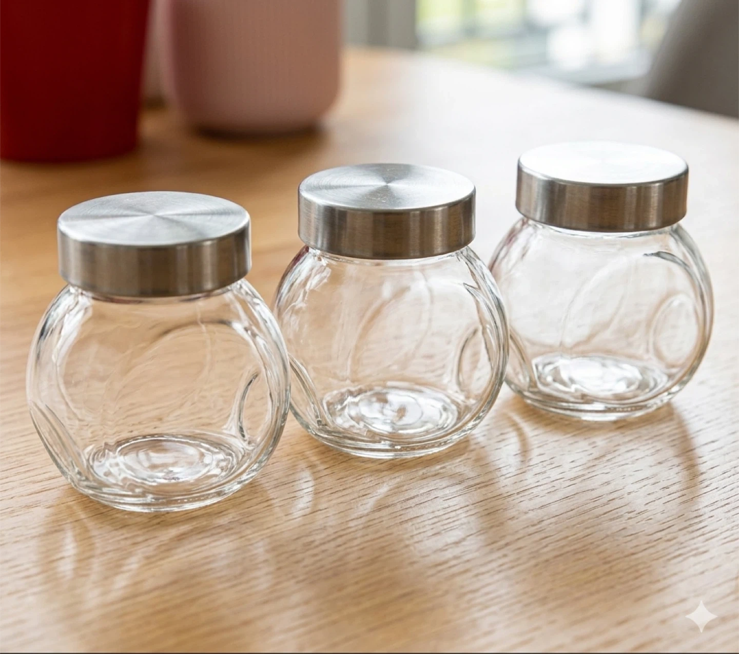 Selling these clear glass spice jars with silver lids. They're perfect for organizing your spices in the kitchen!
