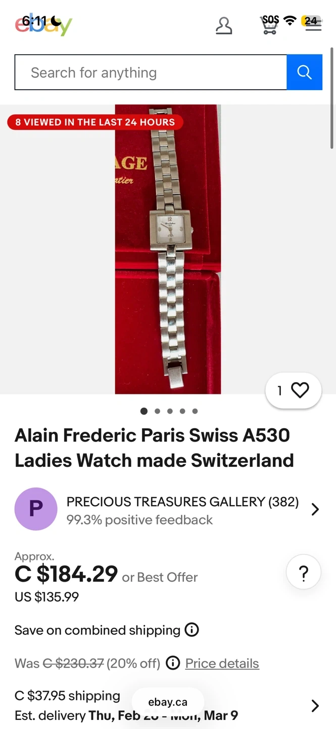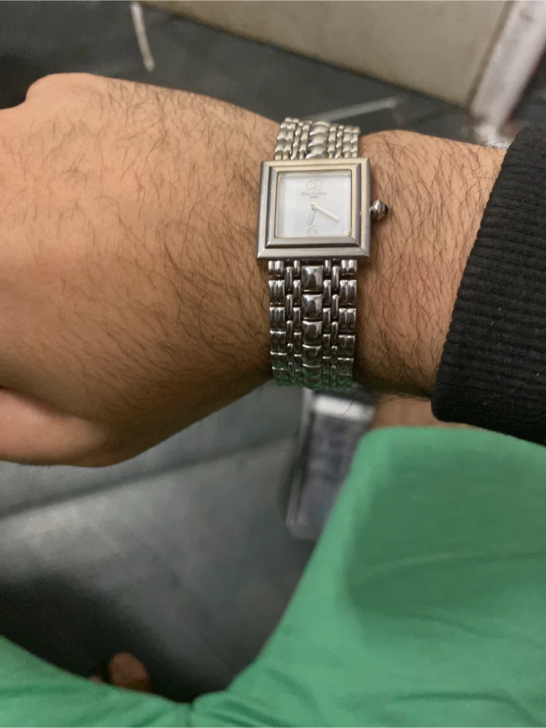 This is an Alain Frederic Paris A530 ladies watch, made in Switzerland. It features a stainless steel band and a square face. This watch is a stylish accessory for any occasion.