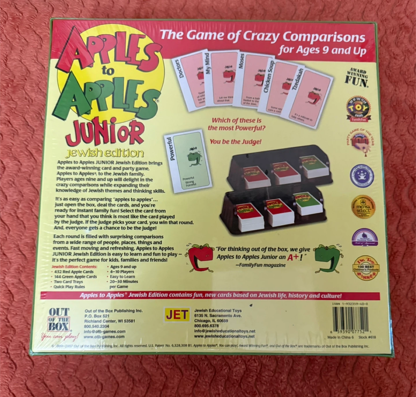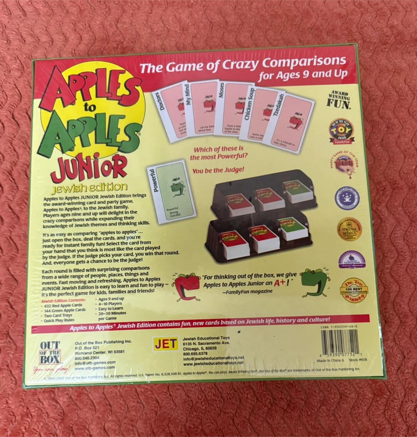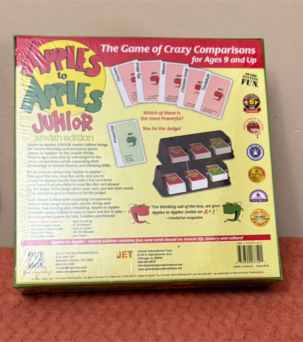 This is a brand new, sealed Apples to Apples Junior Jewish Edition, perfect for family fun! It's the game of crazy comparisons, great for ages 9 and up. Apples to Apples Junior Jewish Edition contains fun, new cards based on Jewish life, history, and culture!