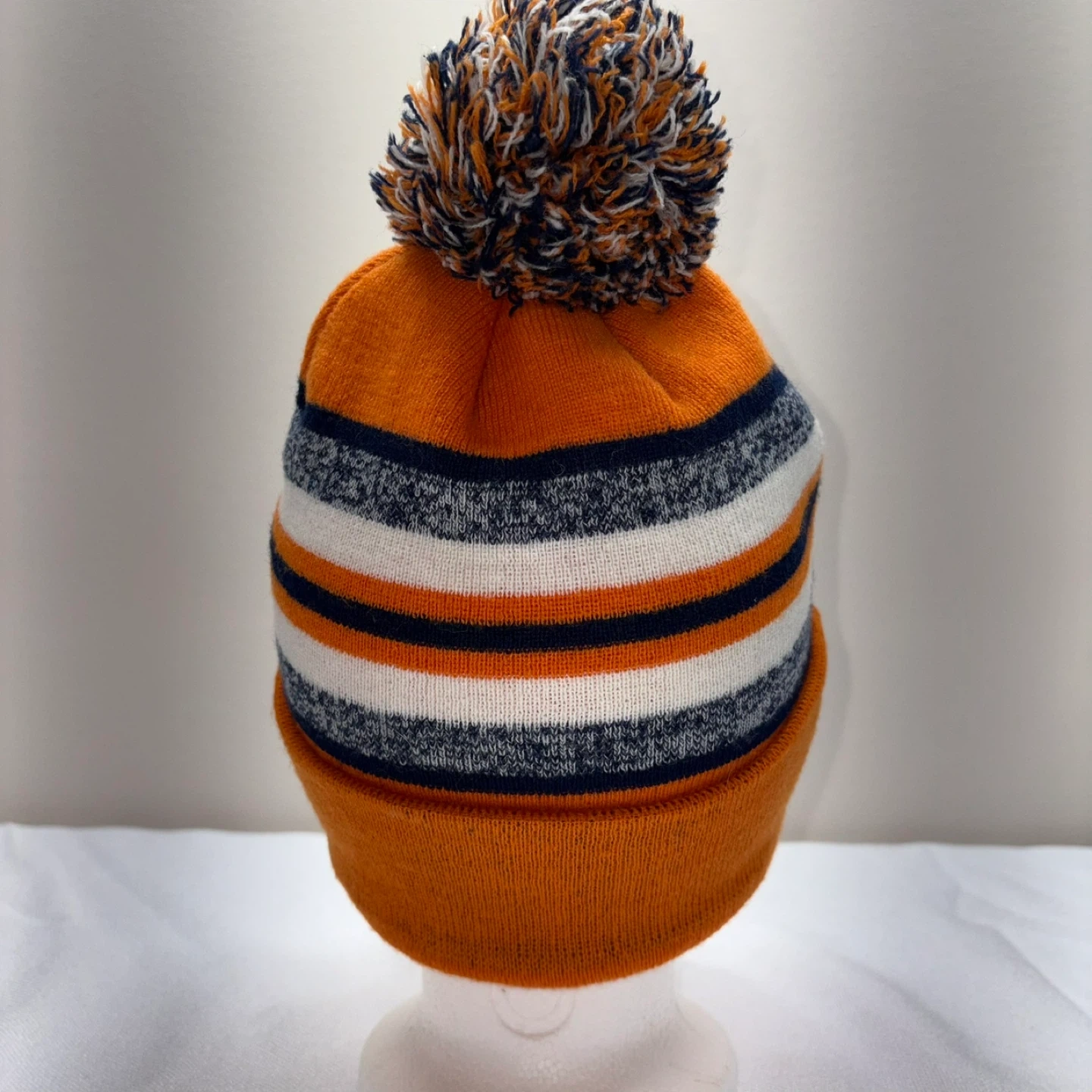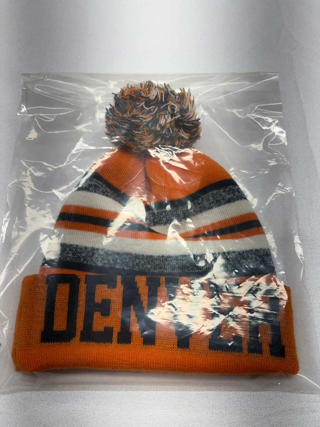 Denver Broncos Striped Pom Beanie - Orange, White, Blue