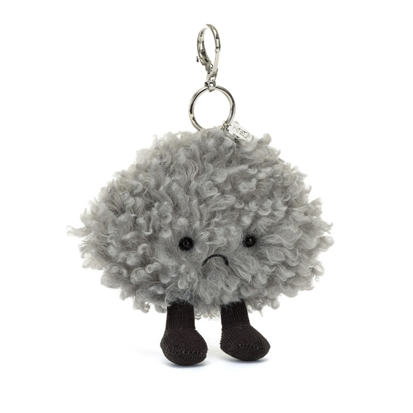-It's the storm cloud bag charm from Jellycat. It's super soft, fluffy and grey.This adorable little friend is ready to hang on your backpack or keys!