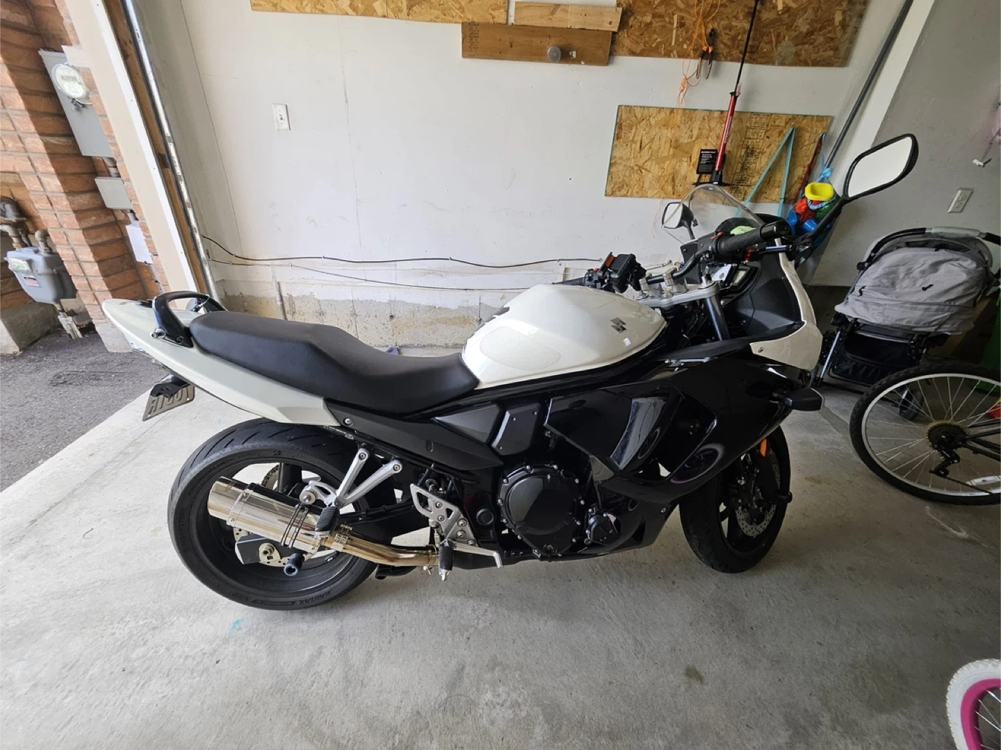 18Selling a Suzuki GS500F motorcycle in white and black. It's in good condition and ready to ride! 2011 Suzuki GSX 650F, less than 10k, comes with lots of accessories. Original and custom exhaust, wind screen, skid protection