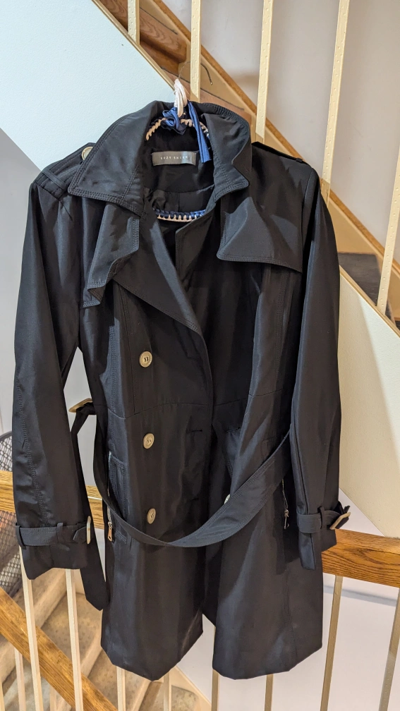 Selling a Suzy Shier double-breasted belted trench coat in black, size medium! It's in great condition and ready for a new home. Perfect for those in-between weather days