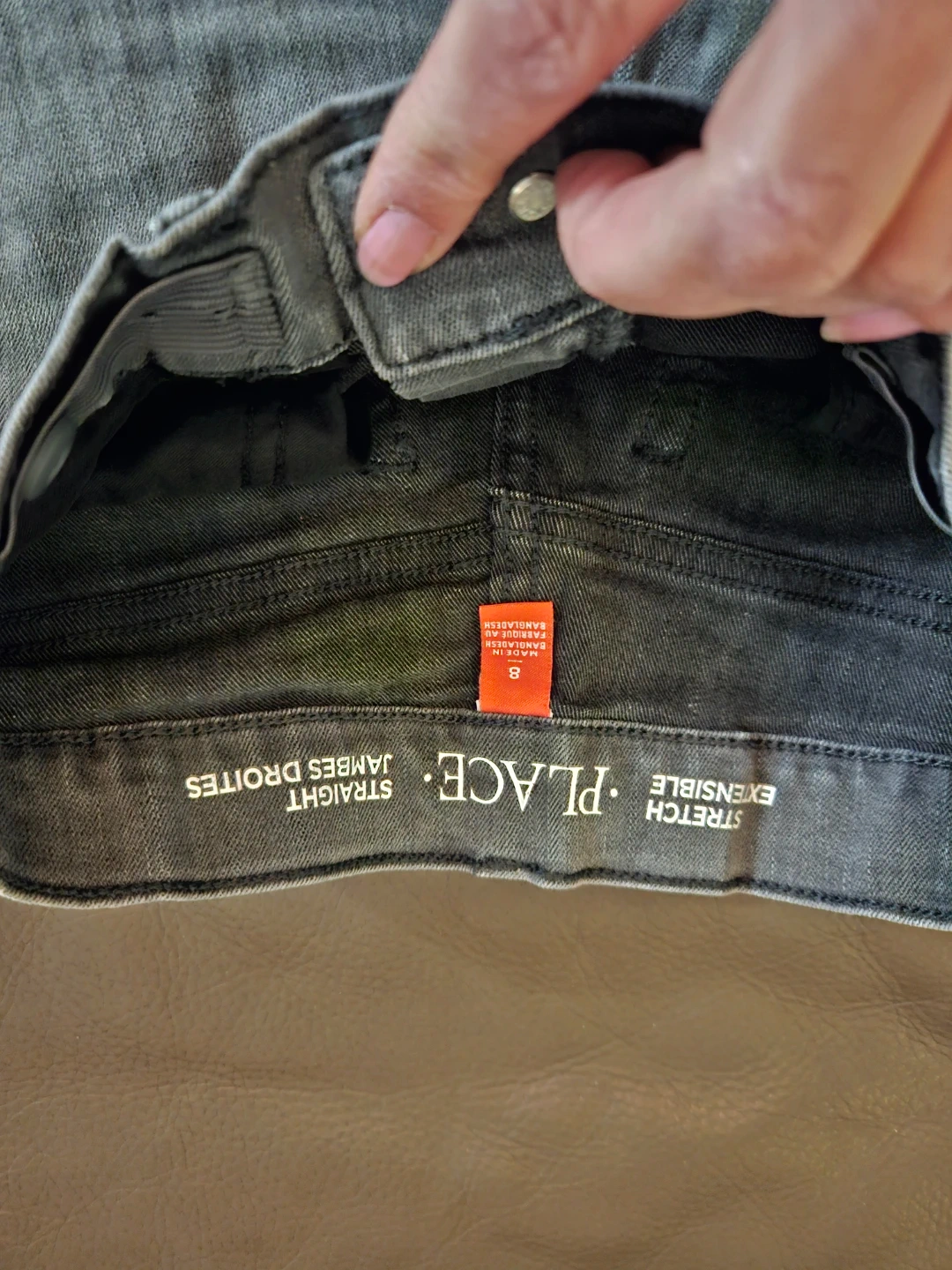 Selling a pair of The Children's Place jeans in size 8. They are a stylish gray color and have a straight leg fit. These jeans are stretch extensible, making them comfortable for kids to wear. Perfect for everyday wear!