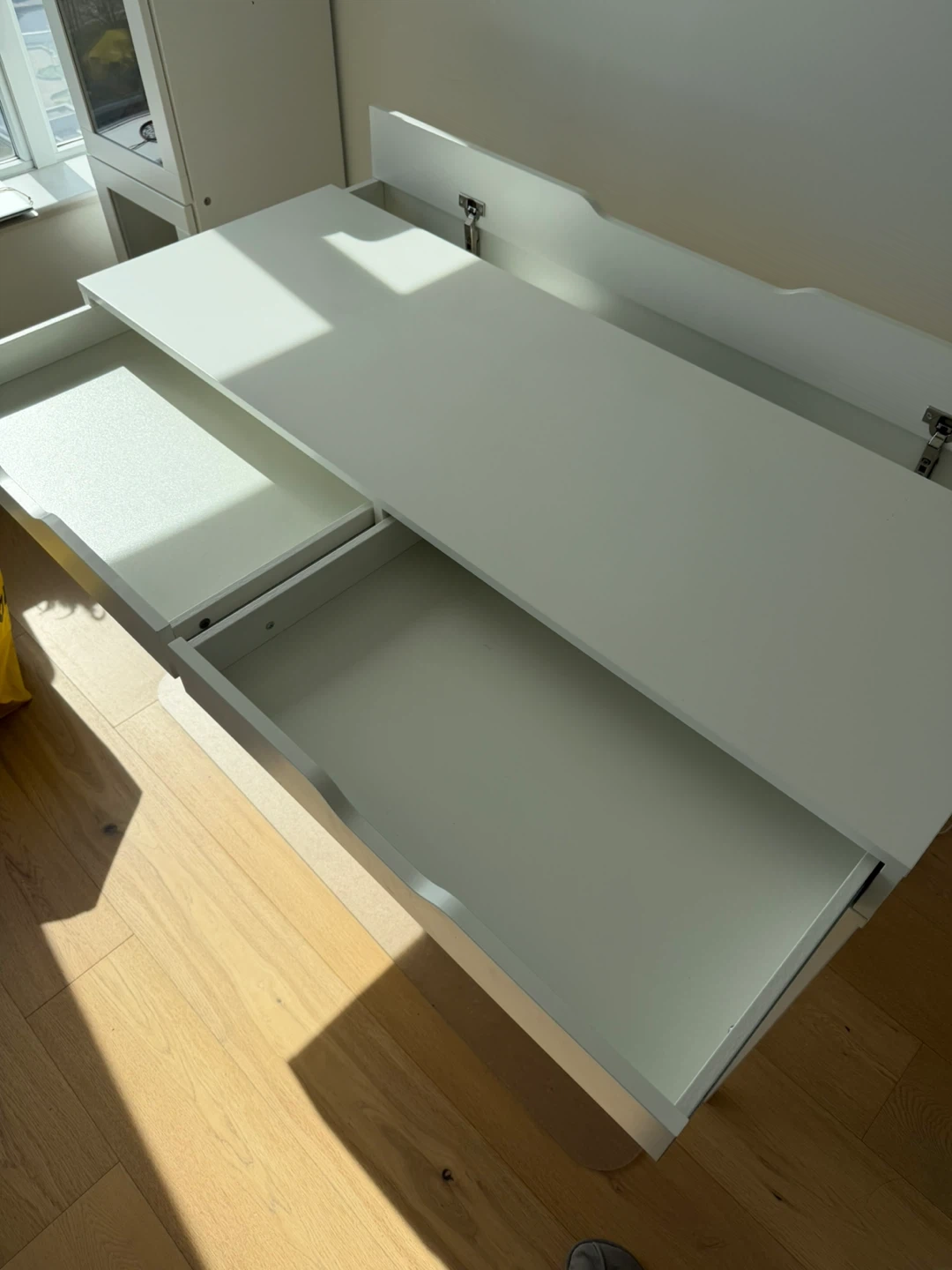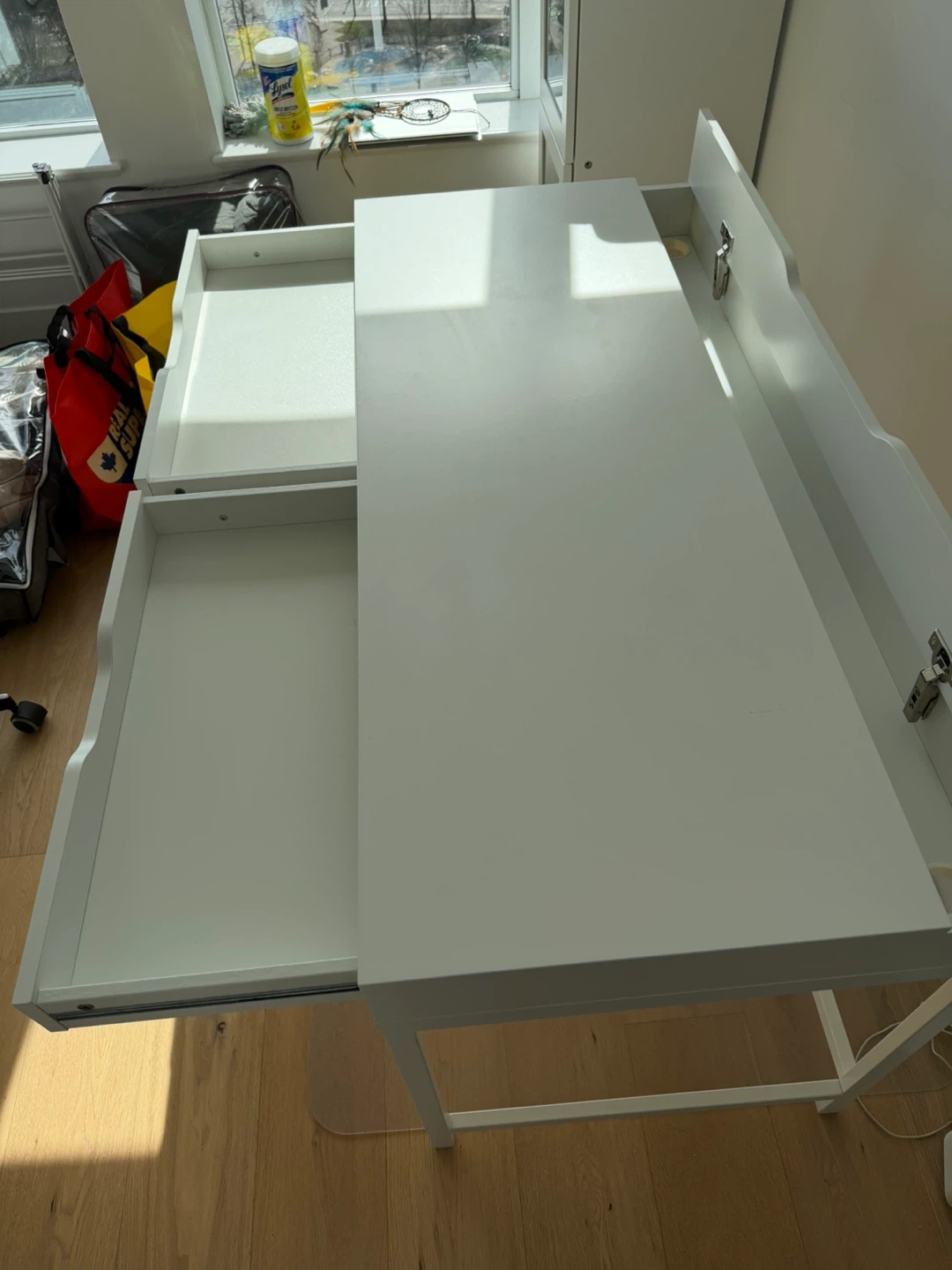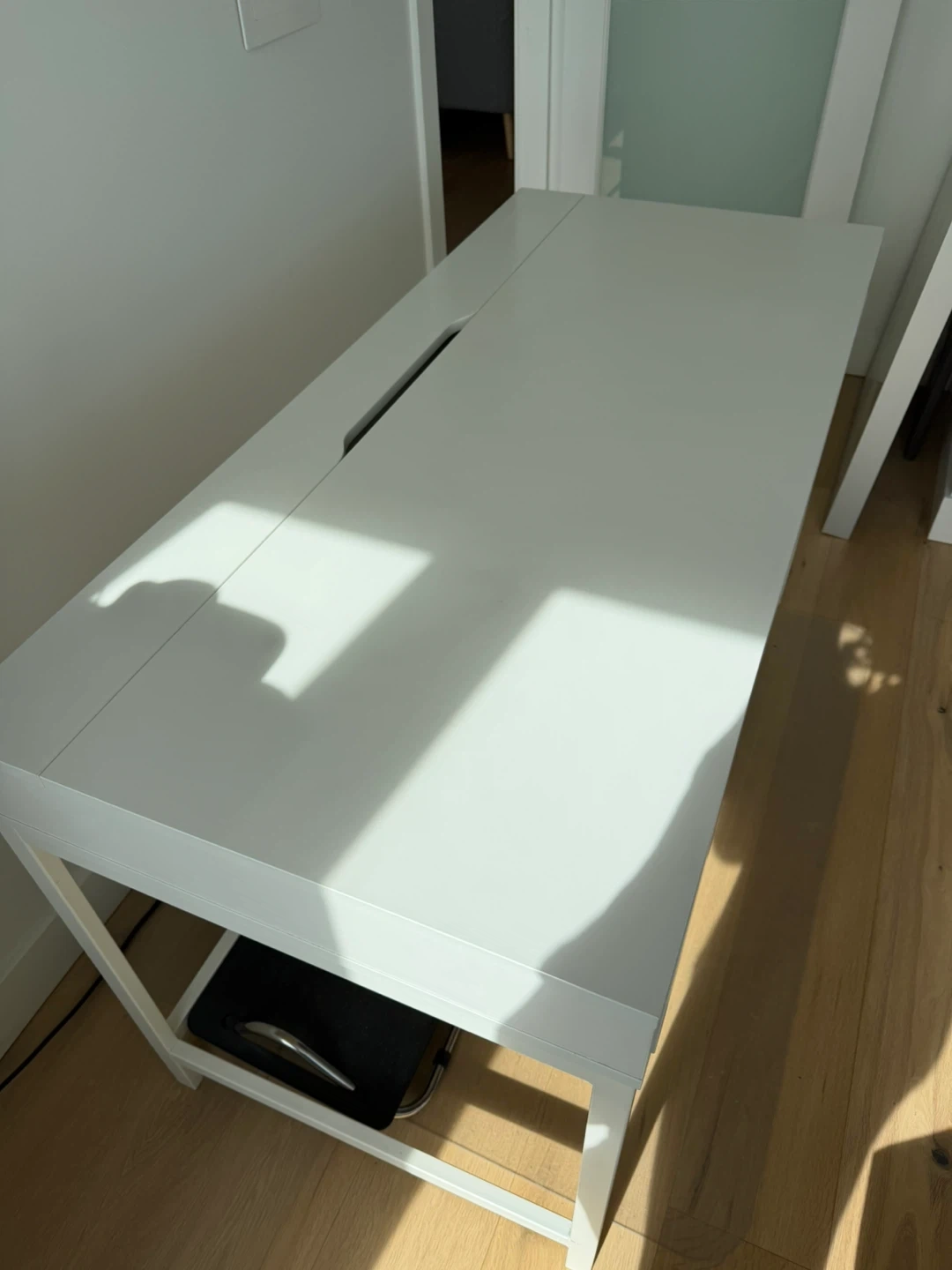 Ikea office desk. Used but like new. Need to seek due to moving to a new place and it’s too big for the den in new place. Sturdy, solid office desk.