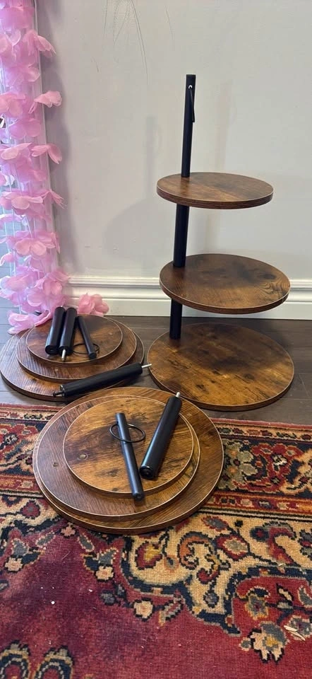 3-Tier Wooden Dessert Stands – Rustic Wedding Decor (Used Once)