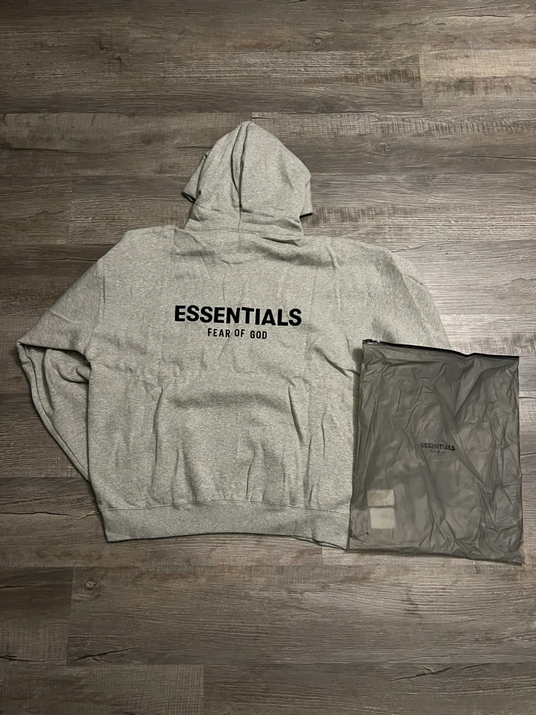 Grey Essentials hoodie from Fear of God. Size L. Comes with original packaging. Made in Vietnam.