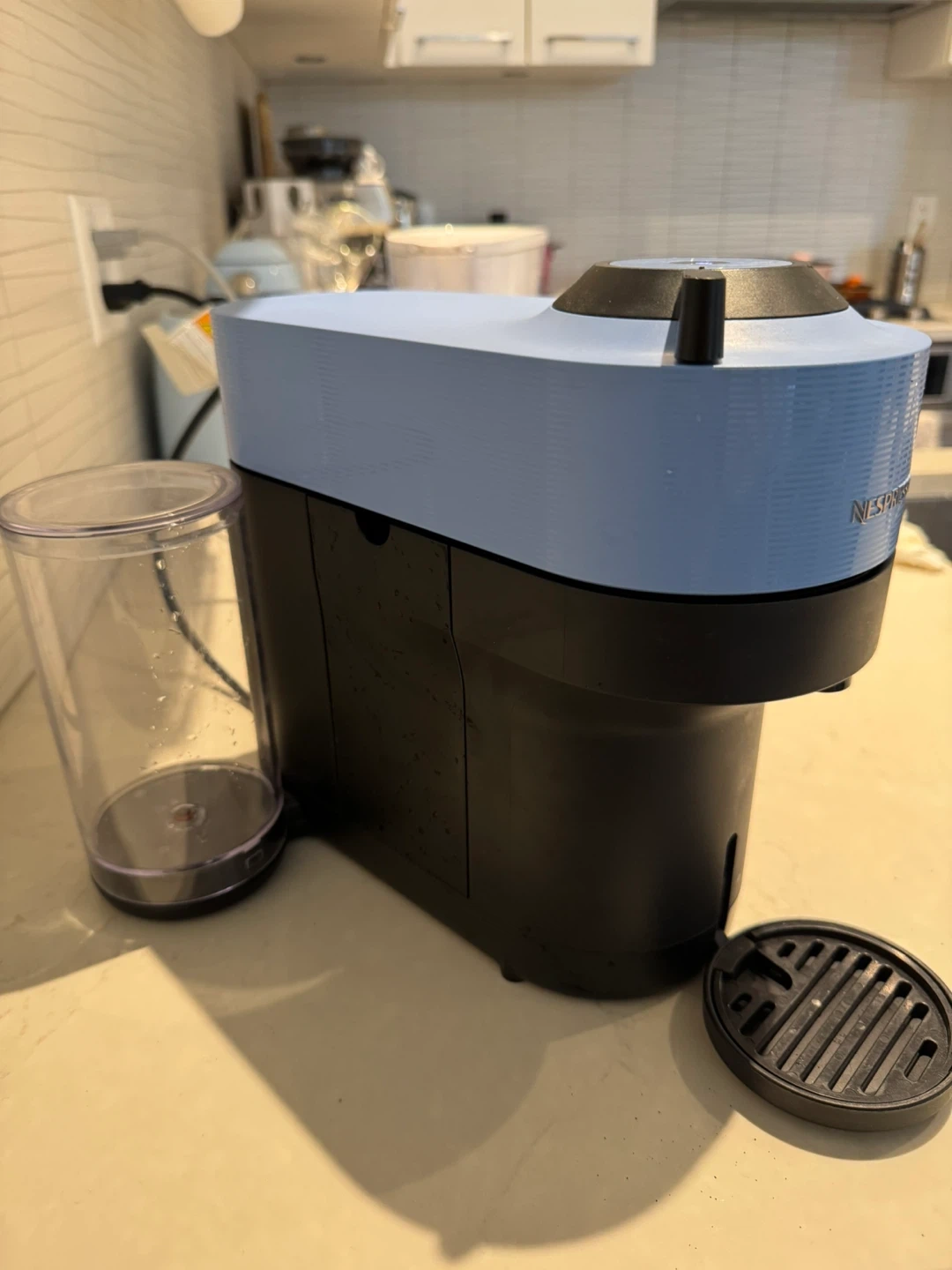 Selling a Nespresso Vertuo Pop coffee machine in light blue. It's in great shape and ready to make some delicious coffee.