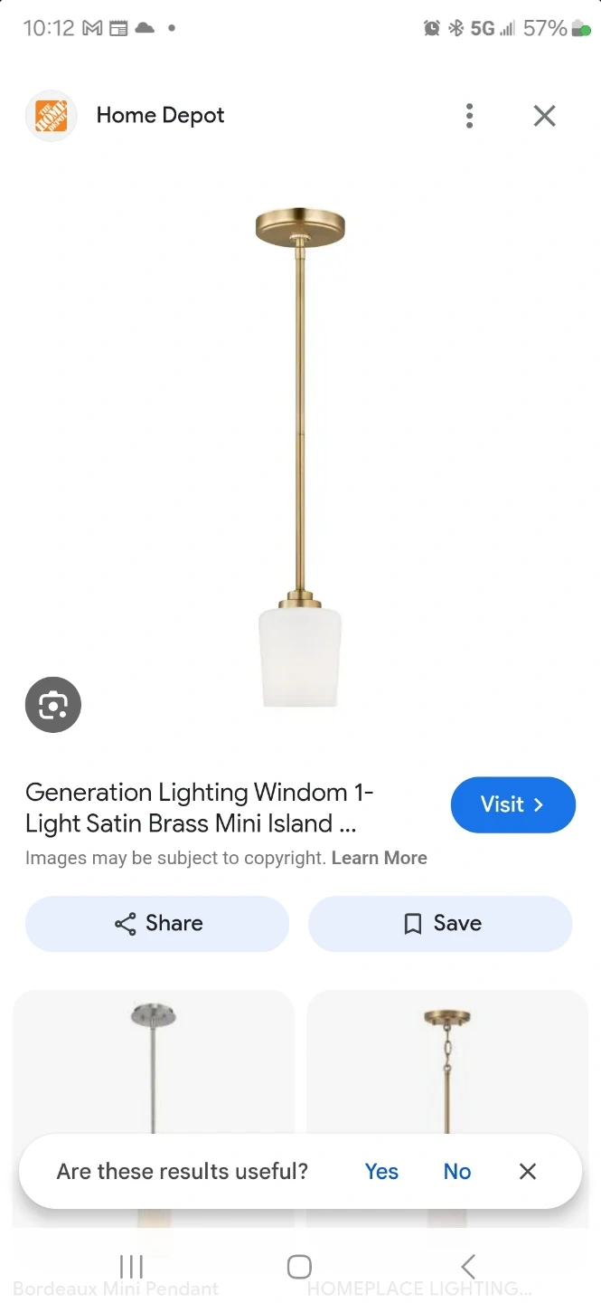 Generation Lighting Windom mini pendant. It's a 1-light fixture in satin brass. The shade is frosted glass.