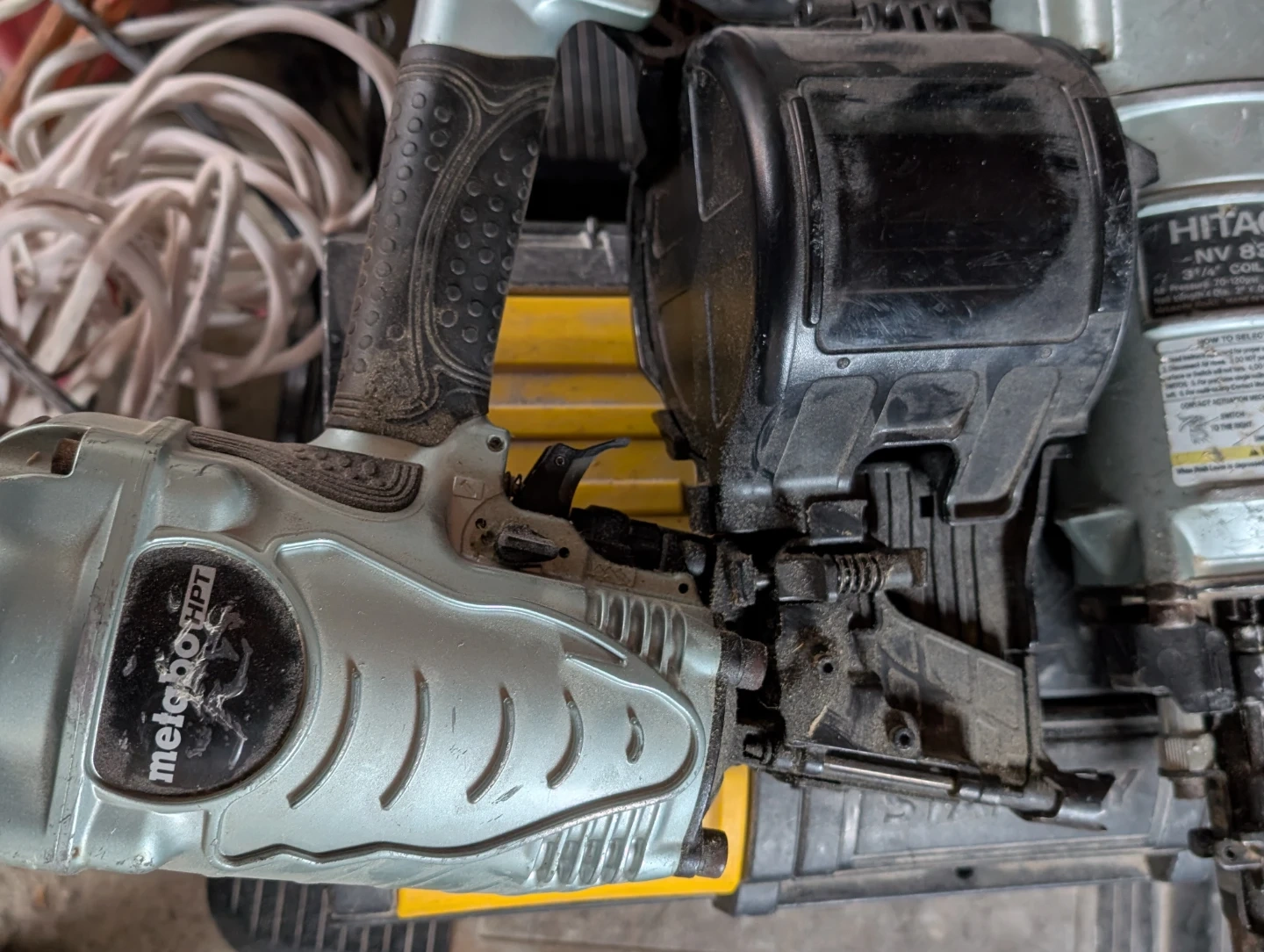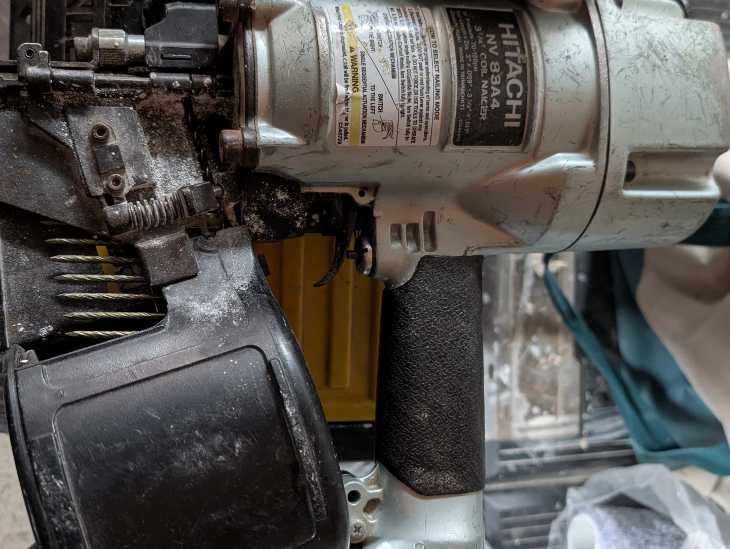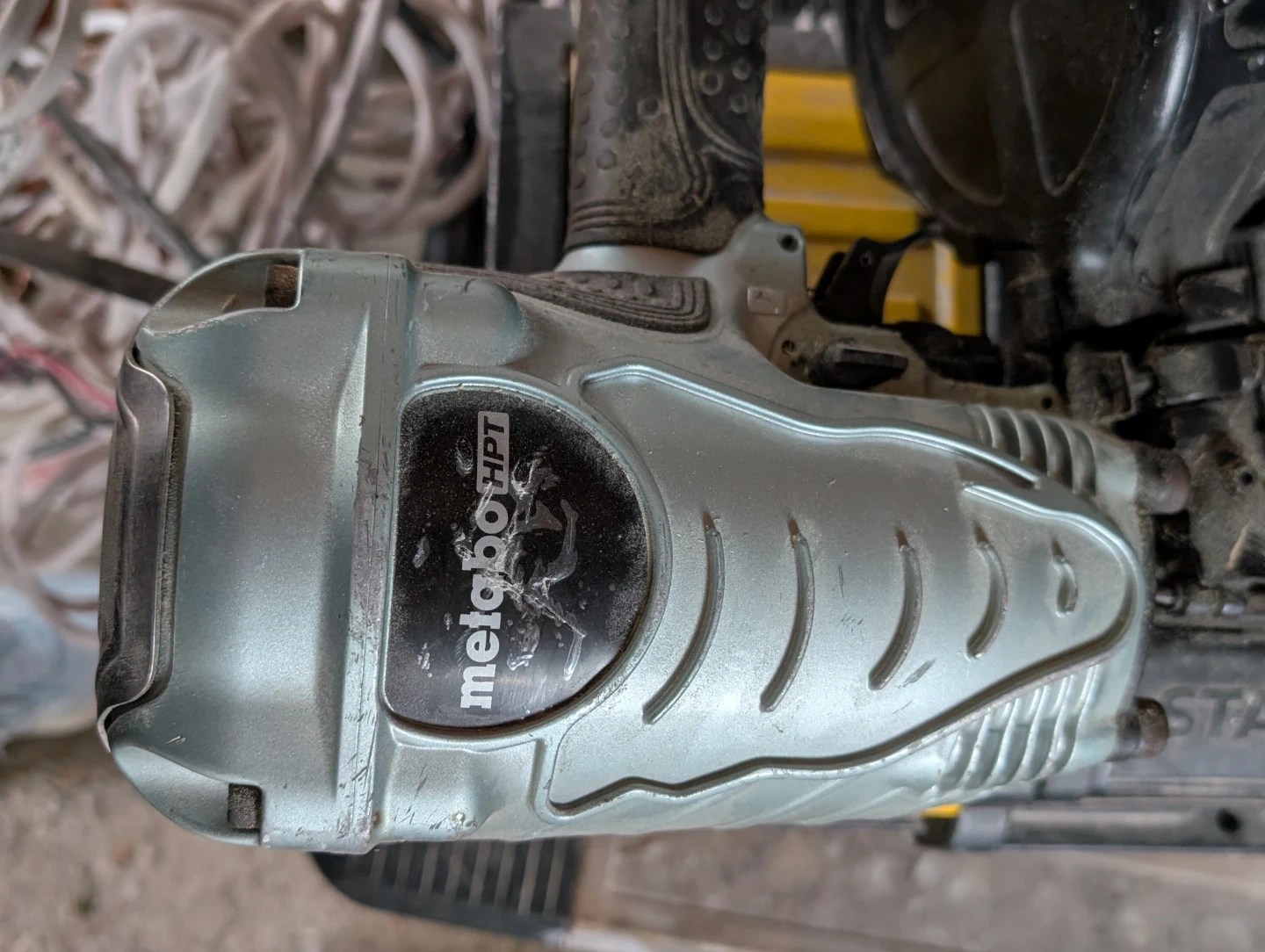 Hitachi NV83A4 framing nailer for sale. This tool is powered by air. It's a pneumatic nail gun designed for framing jobs. Use it for building and renovation projects.