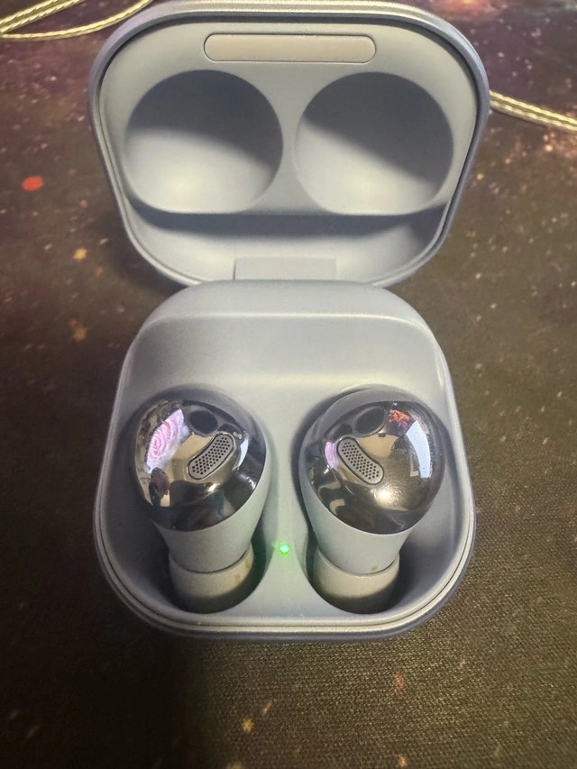 Get ready to immerse yourself in sound with these pre-loved Samsung Galaxy Buds Pro! These earbuds are known for their amazing audio quality, active noise cancellation, and comfortable fit. This set is in used condition. Perfect for workouts, commutes, or just relaxing at home. Here are some specs: Bluetooth 5.0, Active Noise Cancellation (ANC), IPX7 water resistance, Wireless Charging. I'm asking $100, which is a fair price. Available? Absolutely, if the ad's still up!