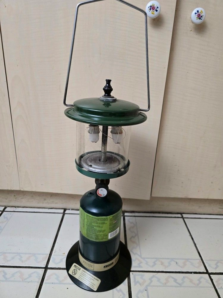 Enjoy your favorite campsite activities day or night with this Wenzel 2-Mantle Propane Lantern. It features a regulated on/off knob for consistent performance in all seasons, a weather-resistant baked enamel finish, and a non-tip base with extendable feet for stable use. The portable design includes a convenient steel carrying/hanging handle, making it ideal for various outdoor activities and essential for emergency situations. It produces up to 2200 lumens and comes with two silk mantles. Please note: the glass dome has a crack, but it does not affect the operation of the lantern.