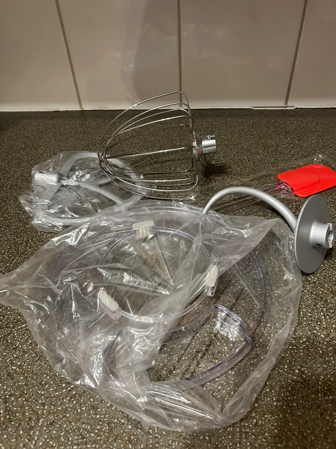 This is a COOKLEE SM-1551 stand mixer in red. It comes with the original box and a cookbook. Mixer is 5.65KG with dimensions of 445x292x390MM. It's great for baking needs!