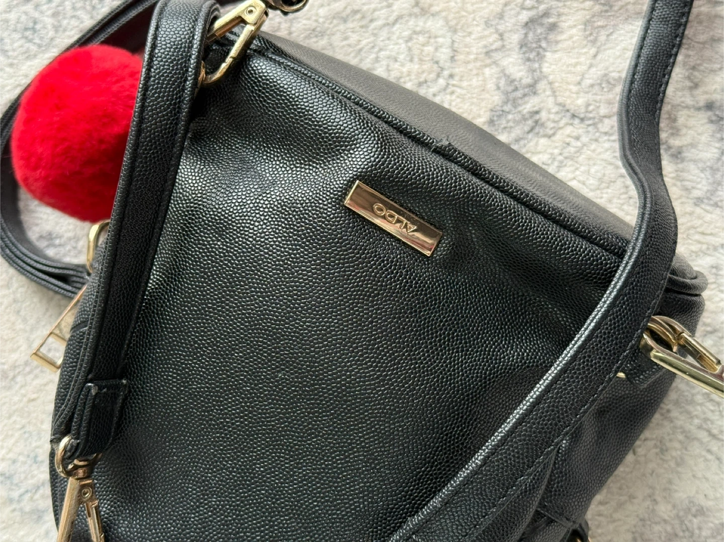 ALDO Black Mini Backpack with Pom Pom Charm