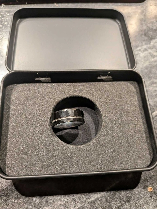 I'm selling this new condition fully tungsten ring. Ordered it the wrong finger size which is why I'm selling it.
