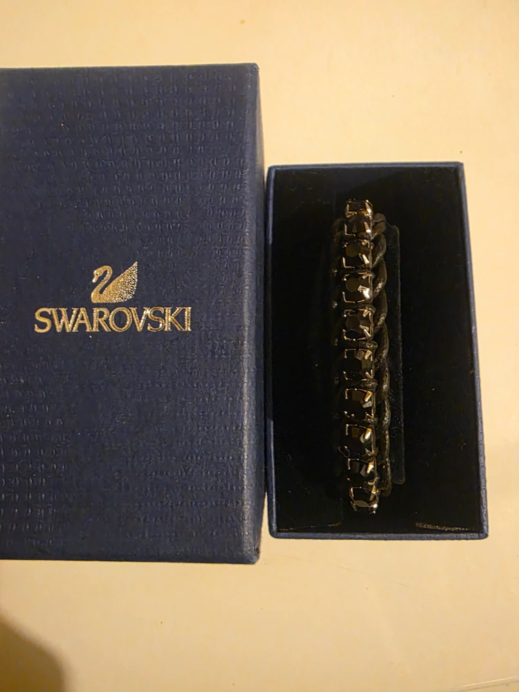 Selling a lovely Swarovski bracelet! It features a black leather band adorned with sparkling crystals. Comes with the original box, making it perfect for gifting or safekeeping! It's in great shape and has never been worn.