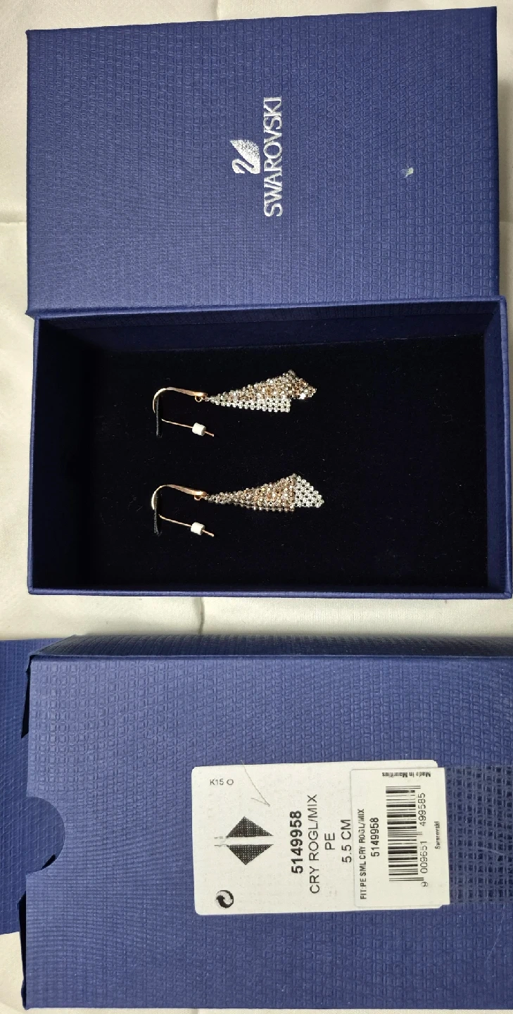 85Selling a pair of Swarovski Cry Rogl/Mix earrings. These are new and come with the original box. The earrings measure 5.5 cm in length and have a beautiful, eye-catching design!