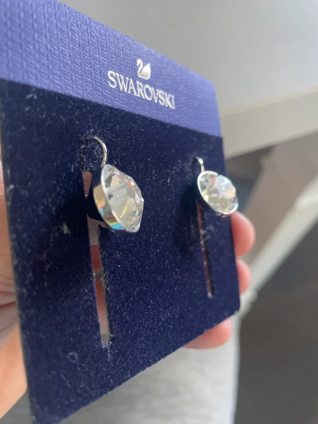 116These are a pair of Swarovski crystal drop earrings, brand new on packaging! They feature a beautiful, clear crystal design that would add a touch of sparkle to any outfit. Perfect for a special occasion or everyday wear! I mean just imagine hitting up No Frills with these on. That’s real style.