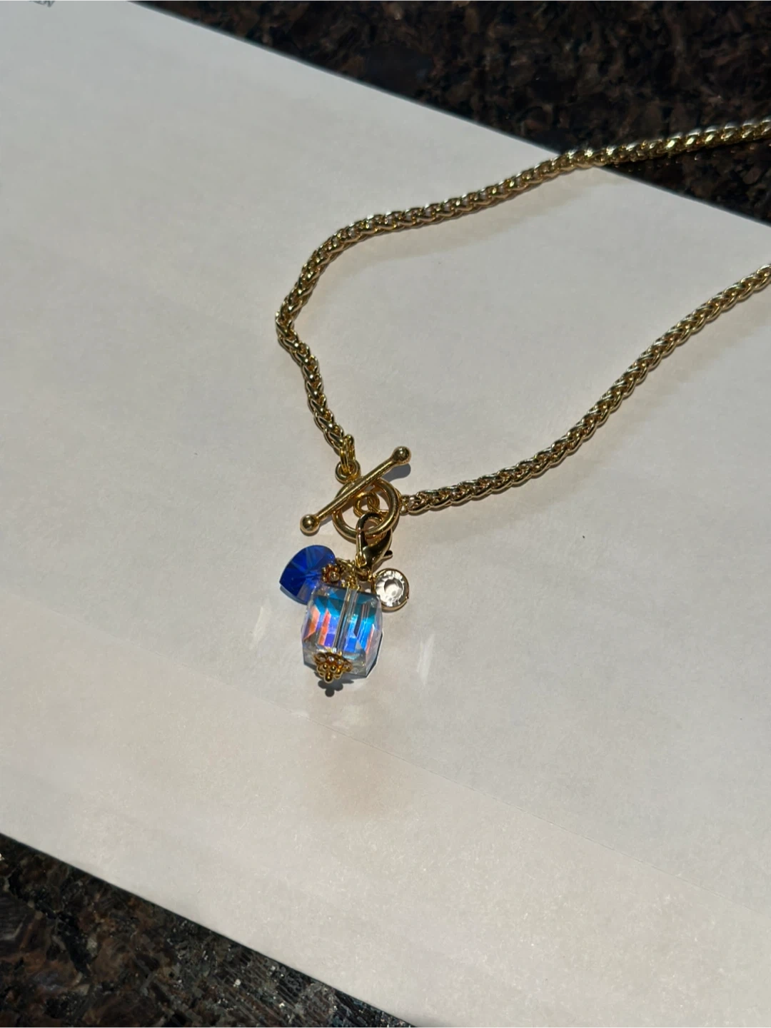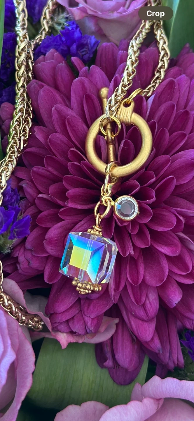 26Description SABRINA Necklace Gold Tone Snake Chain Swarovski AB 12mm Vintage Crystal Bead Gold Tone Toggle Lariate style Clip on / off