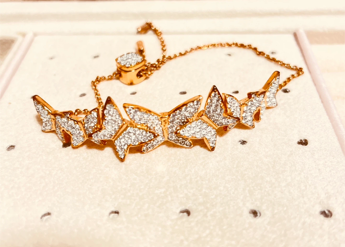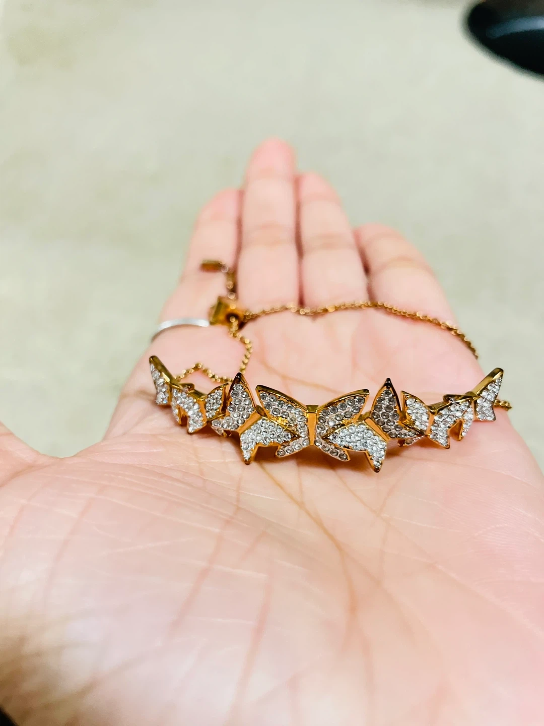 60Selling a beautiful Swarovski Lilia butterfly bracelet in a rosegold tone finish! It features delicate butterflies adorned with sparkling crystals, adding a touch of elegance to any outfit