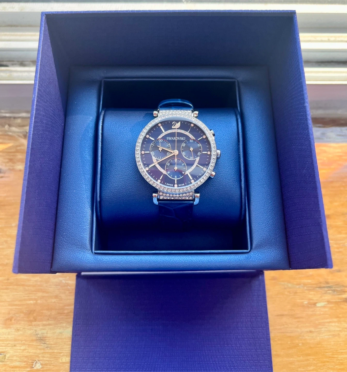 Selling a beautiful Swarovski watch with a striking blue colour. It’s Swiss made, has a leather strap and crystals. It’s battery operated and needs a new battery. It comes with its original box, certificate and recycling instructions. The watch is in excellent condition and ready to wear. Never worn. Open to offers. Cash preferred. Meet at Oldmill Subway Station. Serious buyers only! If you reschedule more than once or you stop responding to my messages, I will assume you are no longer interested in the item and move on to the next buyer.