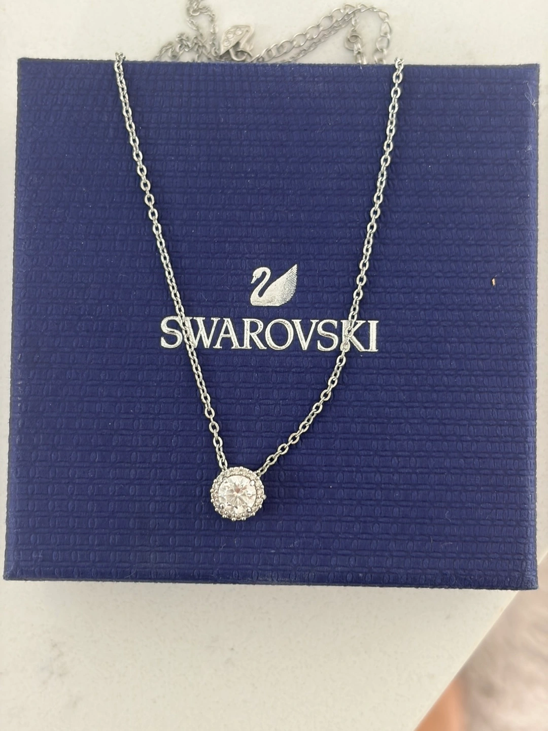96Selling a beautiful Swarovski necklace in excellent condition! It comes with its original box, perfect for gifting or keeping it safe. The necklace is silver and features a sparkling crystal pendant. A lovely addition to any jewellery collection!