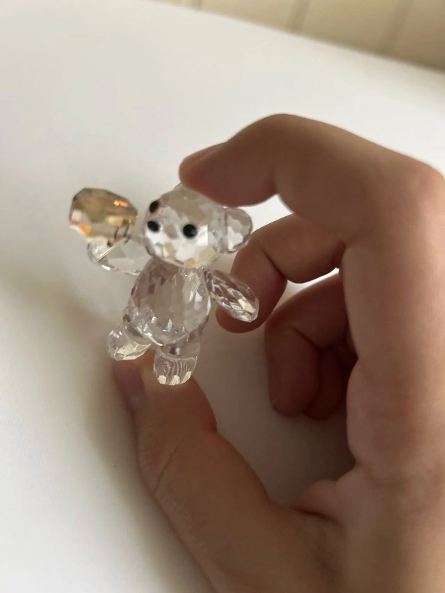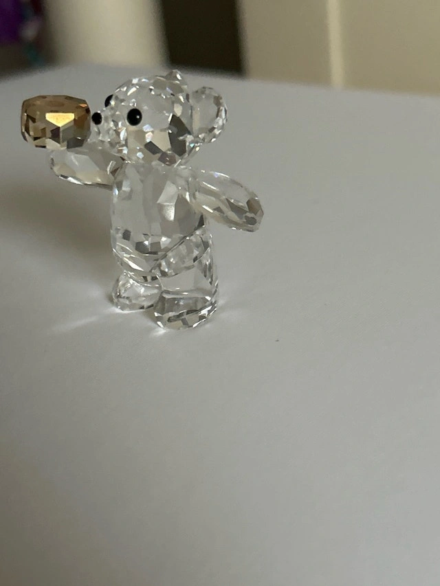 15This used Swarovski Teddy Bear with a chocolate cake is in good condition, but missing the candle and sprinkles. It would make a great addition to your collection or as a gift for someone special. I'm downsizing my collection, so it's time for this little guy to find a new home. This piece is sure to bring a touch of sparkle to any space. It measures approximately 2 inches tall. If the ad is still up, the item is available!