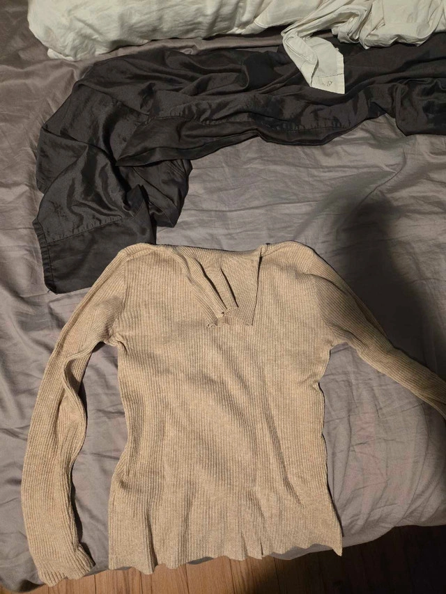 This tan sweater with a ribbed design offers a comfortable and stylish fit. It is in good condition, ready to add a touch of warmth and simplicity to your wardrobe. Features: - Ribbed texture - Long sleeves Looking to declutter and pass on this gently worn sweater to someone who will love it! If the ad is up, it's still available!
