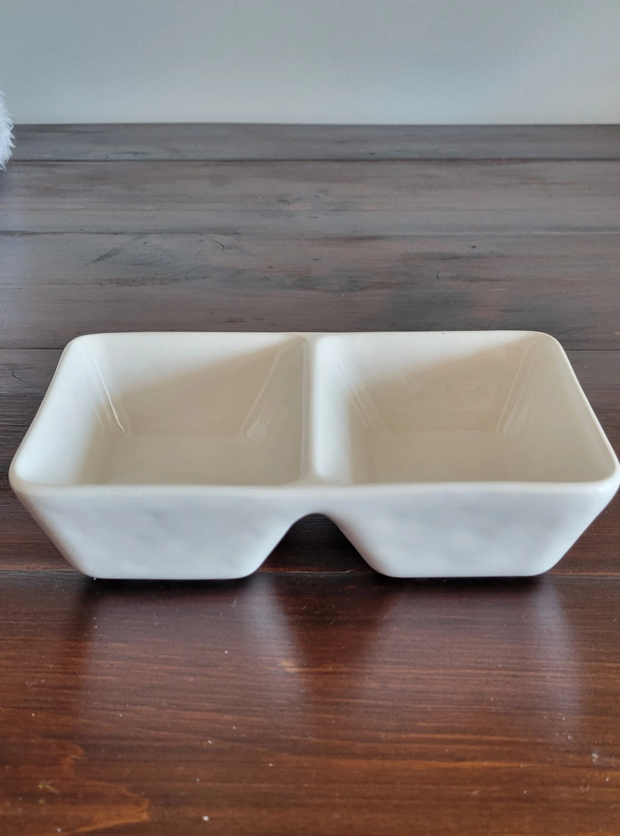 Brand new, never-used Rae Dunn white ceramic dish artisan collection. Two sections, labelled "Sweet." and "Salty.". Perfect for snacks or condiments. Also included is a brand new, collapsible measuring cups. Set includes four cups and four measuring spoons. BPA free and dishwasher safe. Expands and collapses for easy storage. Check out my other listings and bundle to save. ๐๐ป๐ธ Cash and pickup only on Brimley and Eglinton Rd E. in Scarborough.