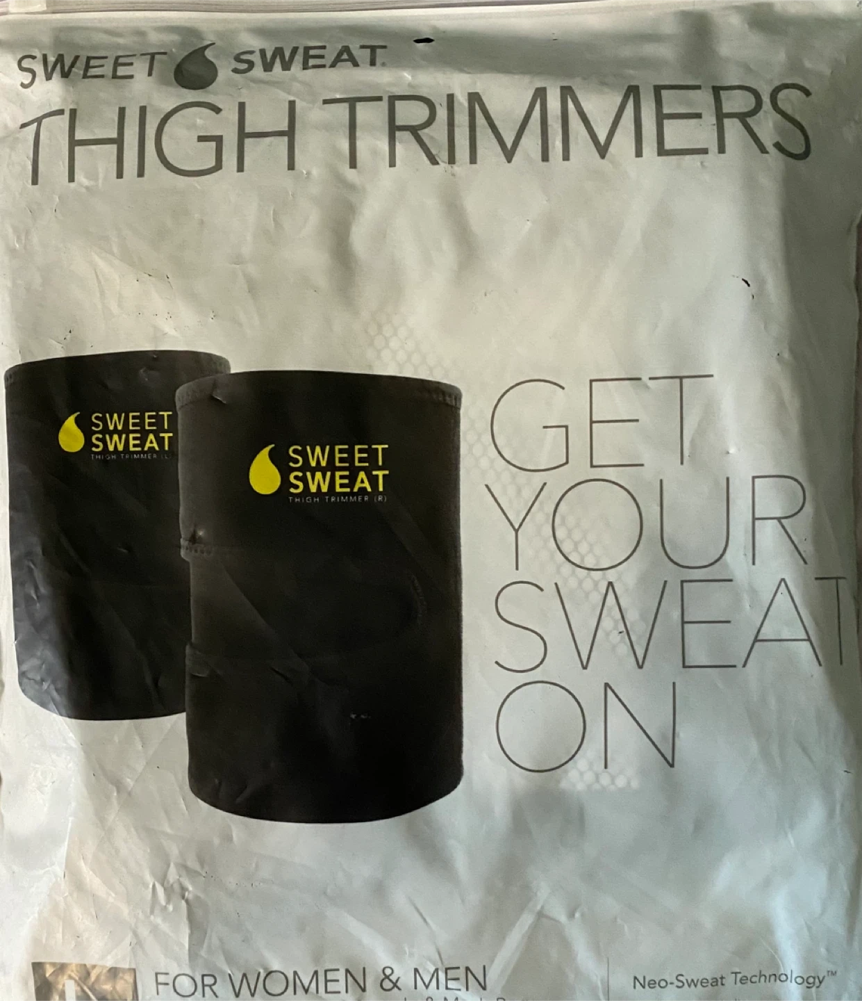 28Get your sweat on with these Sweet Sweat Thigh Trimmers! They're made with Neo-Sweat Technology and contoured to fit comfortably around your thighs during exercise, allowing enough flexibility for a multitude of leg workouts. They are contoured and flexible for comfortable workouts, and the textured grid interior repels moisture. Premium grade latex-free neoprene with reinforced trim and lining. Comes with a wash bag too
