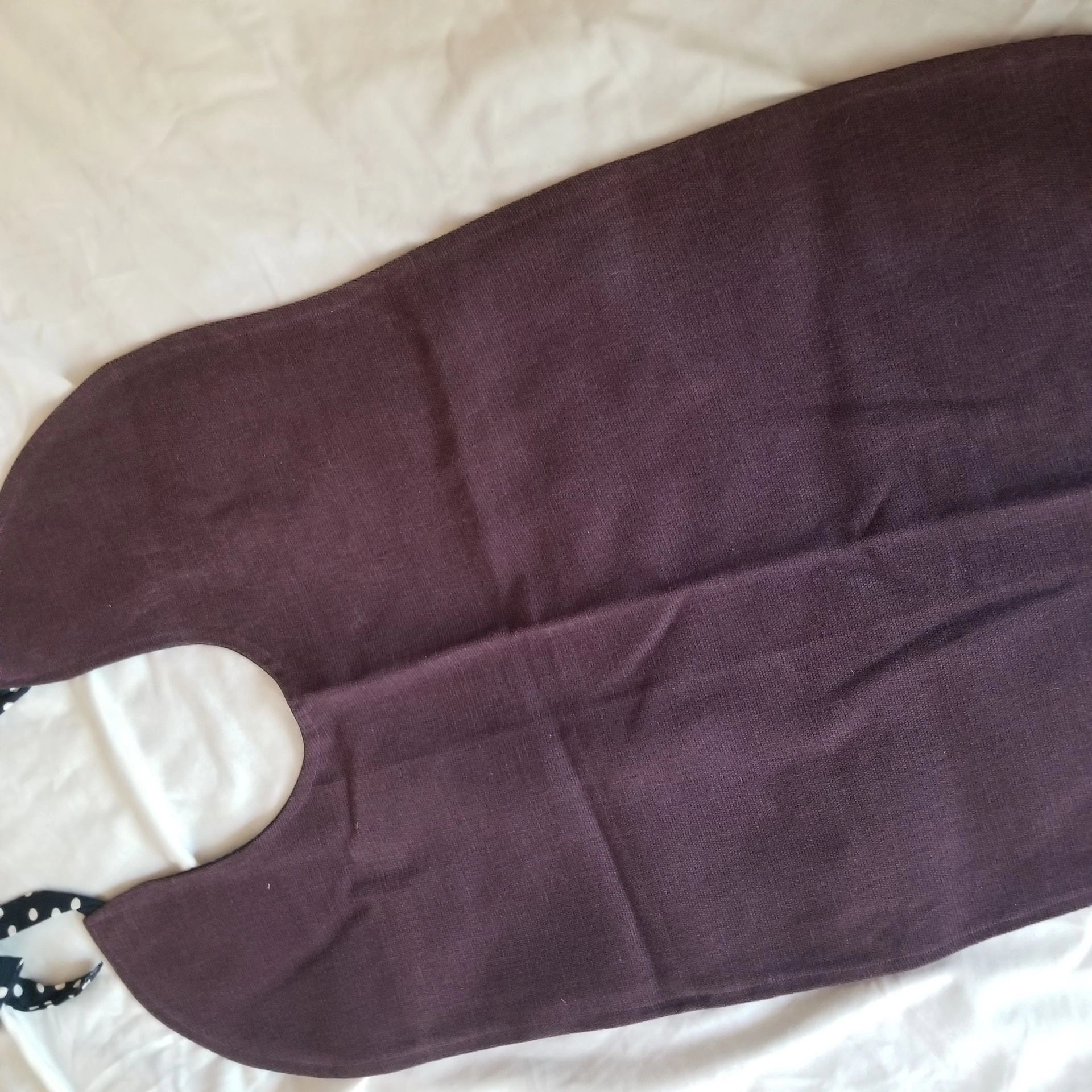 Fashionable adult size bib. Handmade, all fabric, no plastic. Reversible and washable. Approximately 18 by 30 inches. Pick up in Niles Illinois. Color: Purple. Brand: Dillyraepickle.