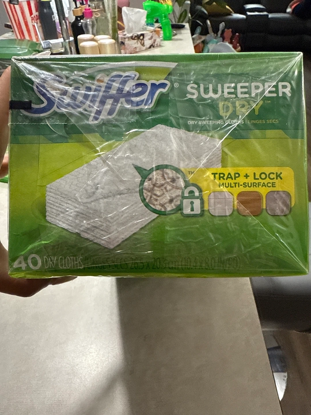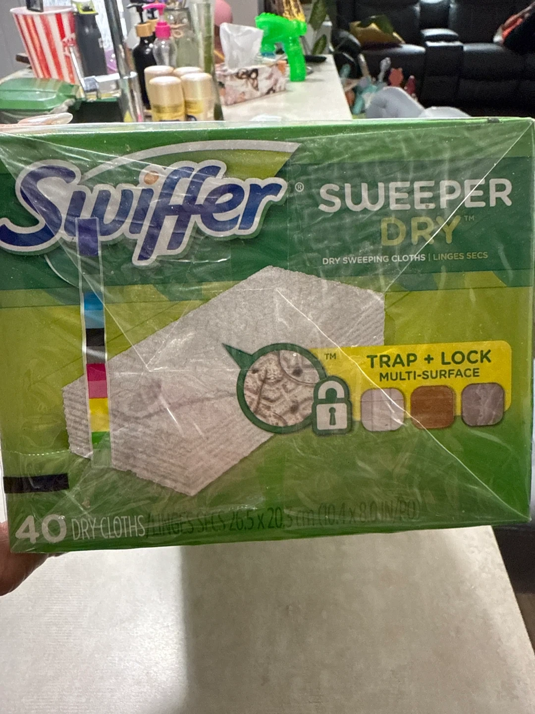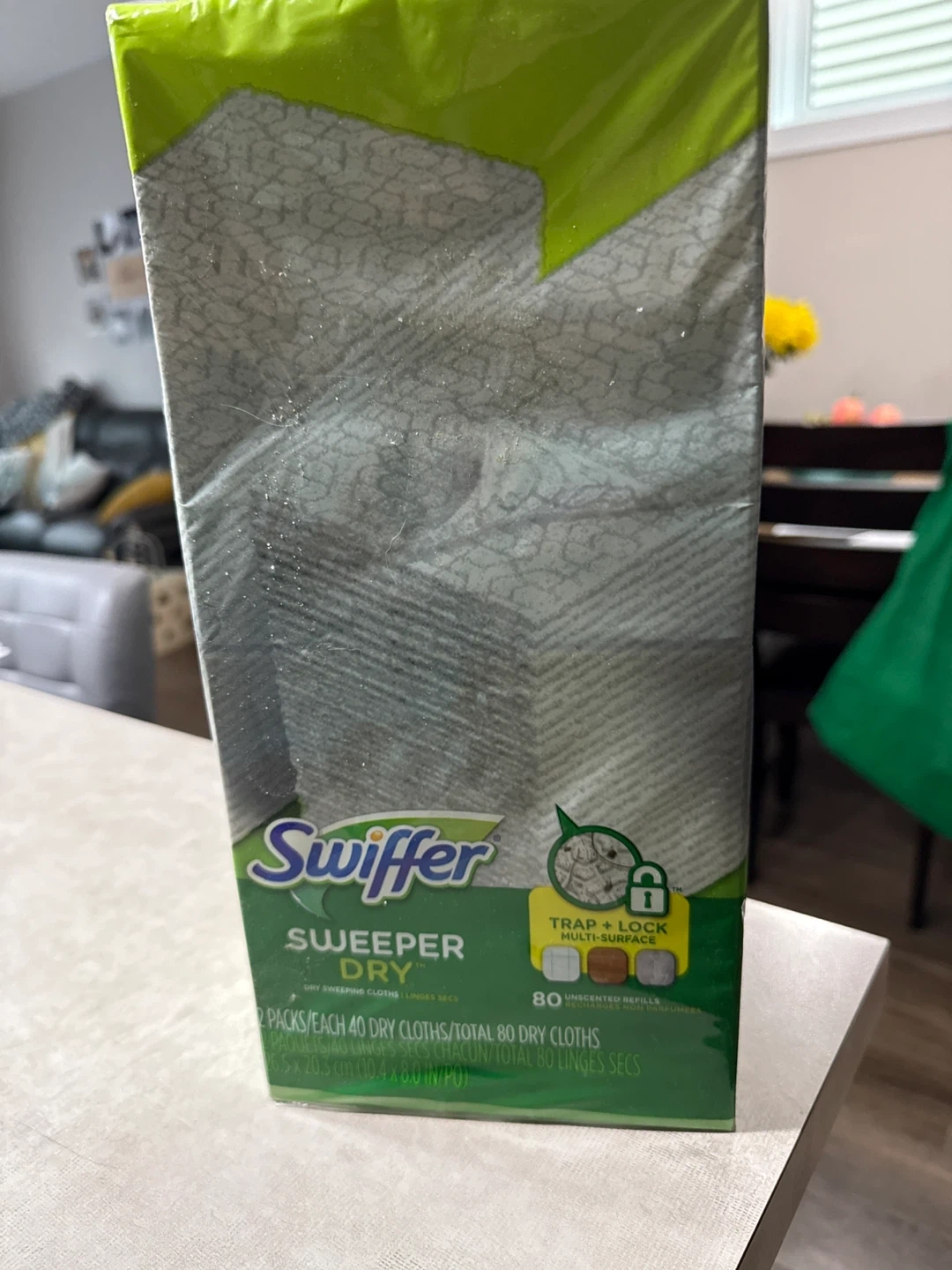 75Selling a new, unopened box of Swiffer Sweeper Dry refills! This box contains 80 unscented dry sweeping cloths that use Trap + Lock Technology for multi-surface cleaning. Each cloth measures 26.5 x 20.3 cm (10.4 x 8.0 in)